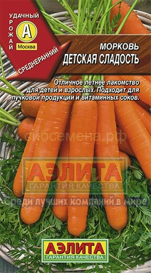 Среднеранний сорт, период от всходов до сплошной уборки 95-100 дней. Корнеплоды средней длины до длинного, цилиндрические (сортотип Амстердамская), массой 90-130 г. Сердцевина и кора красно-оранжевые. Вкусовые качества отличные, мякоть сладкая, сочная. Рекомендуется для использования в свежем виде и на пучковую продукцию, подходит для приготовления соков. Урожайность высокая – 6-7 кг/м2. Выход товарной продукции – 76-83%.