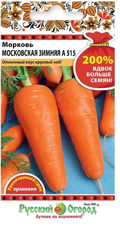 Среднеспелый (68–98 дней) сорт. Корнеплоды ярко-оранжевые, тупоконечные, длиной 12–15см, массой 100–170г. Вкусовые качества высокие. Сорт устойчив к стеблеванию. Пригоден для подзимнего посева. Лучший для хранения и потребления в свежем виде зимой.