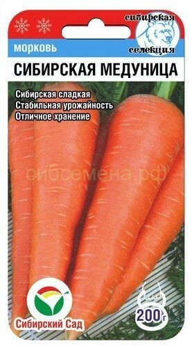 Среднеспелый сорт сибирской селекции, отличающийся великолепным сладким вкусом корнеплодов. Предназначен для использования в свежем виде, хранения и всех видов переработки, приготовления вкусных сладких соков для детей и взрослых. Формирует оранжево-красные конусовидные корнеплоды длиной до 16 см, массой до 200 грамм с сочной сладкой мякотью. Сорт приспособлен к суровым сибирским условиям, хорошо формирует урожай даже при недостаточном уходе. Сорт прекрасно храниться в зимний период с сохранением всех товарных качеств.