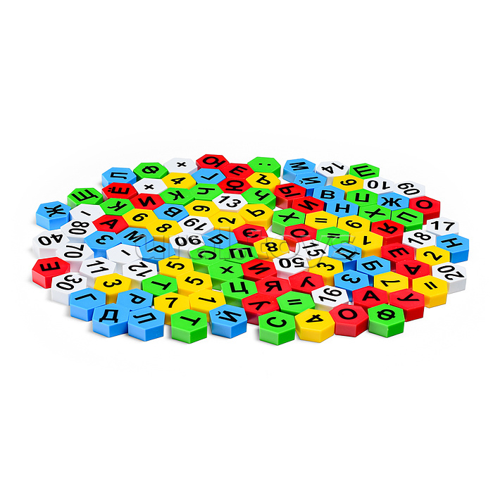 Мозаика: • В наборе: • игровое поле (32х25 см.) • 110 фишек с буквами, цифрами и математическими знаками. • Материал: пластик. • Соответствует требованиям безопасности продукции. • Для детей от 3-х лет.