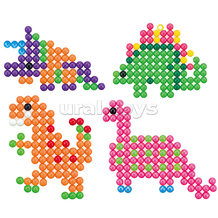 В набор входит: - бокс для бусин. - пластиковая основа 2 шт. - цветные бусины 1000 шт (10 цветов). - распылитель для воды 1 шт. - пинцет 1 шт. - ручка для бусин. - подвес. - кольцо 8 шт. Материал: полимерные материалы, картон. Соответствует требованиям безопасности продукции. Для детей от 5 лет
