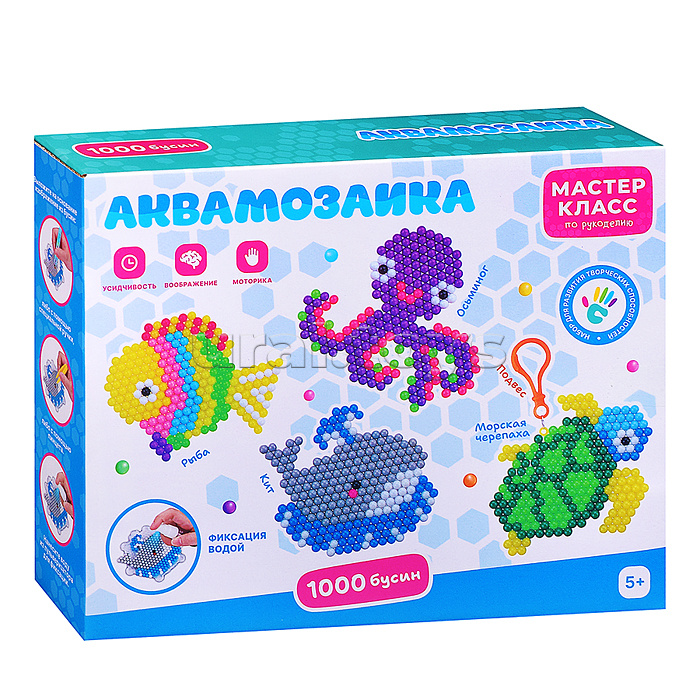В набор входит: - бокс для бусин. - пластиковая основа 2 шт. - цветные бусины 1000 шт (10 цветов). - распылитель для воды 1 шт. - пинцет 1 шт. - ручка для бусин. - подвес. - кольцо 8 шт. Материал: полимерные материалы, картон. Соответствует требованиям безопасности продукции. Для детей от 5 лет