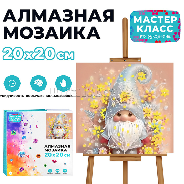 В наборе: - холст на подрамнике со схемой 20 х 20 см. - стразы. - емкость для стразов. - ручка для стразов. - гель-клей. Соответствует требованиям безопасности продукции. Для детей от 12 лет.