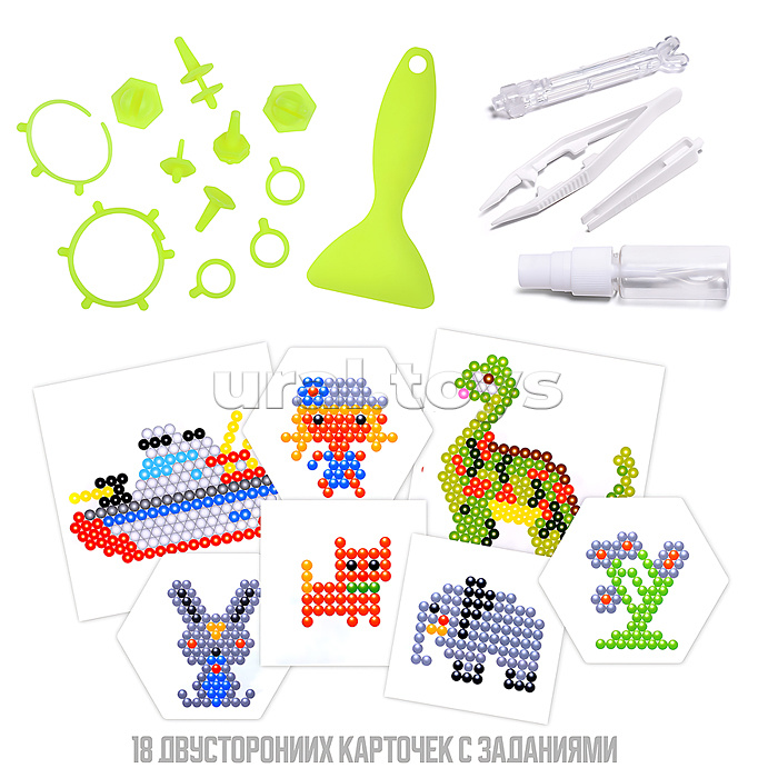 Код: 487859 Штрихкод: 4630432207713 Страна производитель: Китай Размеры упаковки: 20 x 6.5 x 14 см Количество в коробке: 56 В набор входит: - бокс для бусин. - пластиковая основа 8 шт. - цветные бусины 2400 шт (24 цвета). - распылитель для воды 1 шт. - пинцет 2 шт. - ручка для бусин. - подвес. - кольцо 8 шт. Материал: полимерные материалы, картон. Соответствует требованиям безопасности продукции. Для детей от 6 лет. Комментарии к товару