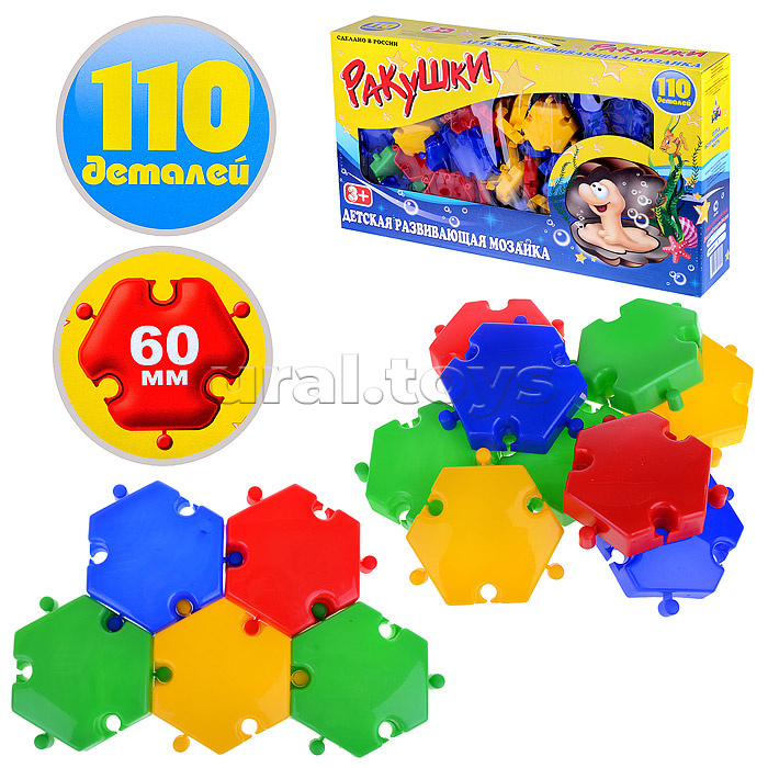 Код: 087793 Страна производитель: Россия Размеры упаковки: 49 x 27 x 9 см Количество в коробке: 8 • Мозайка напольная. • Количество деталей: 110. • Диаметр детали: 6 см. • Материал: пластик. • Соответствует требованиям безопасности продукции. • Для детей от 3-х лет. Комментарии к товару