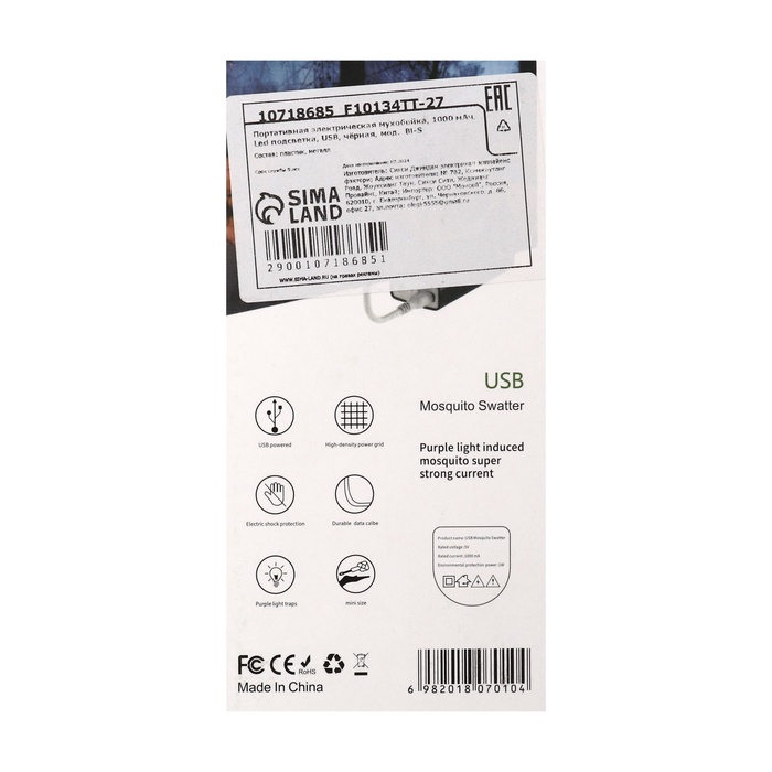 Страна: Китай В боксе: 200 шт Состав: Металл, пластик Материалы: металл, пластик Фасовка: по 1 шт Индивидуальная упаковка: Цветная картонная коробка Габариты товара: 5 см × 15 см × 10 см Сертификат: ЕАС Тип питания: От USB Цвет: Чёрный Область применения: От всех насекомых Вид средства: Мухобойка Тип воздействия: Электрический разряд Тип отпугивателя: Мухобойка Форма средства: Электрическая Этот компактный и эффективный аксессуар — настоящая находка для борьбы с надоедливыми насекомыми. Электрическая мухобойка с LED-подсветкой и питанием через USB — это идеальное решение для дома, дачи или путешествий. Встроенная подсветка позволяет с легкостью использовать устройство даже в условиях слабого освещения, обеспечивая удобство и точность при использовании. Черный цвет устройства делает его стильным и современным аксессуаром, который легко впишется в любой интерьер. Работа от USB гарантирует удобство зарядки, а сам процесс использования устройства становится максимально простым и безопасным. Мухобойка обладает отличной мощностью и эффективностью, позволяя быстро справляться с летающими насекомыми. Легкость и компактность устройства позволяют брать его с собой в поездки и использовать в самых разных условиях. Основные характеристики: