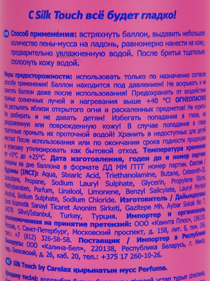 Мусс для бритья Carelax Silk Touch женский, Perfume (200 мл) — нежное и эффективное средство для гладкого и комфортного бритья. Лёгкая, воздушная текстура мусса мягко покрывает кожу, смягчая волосы и снижая риск раздражений и порезов.