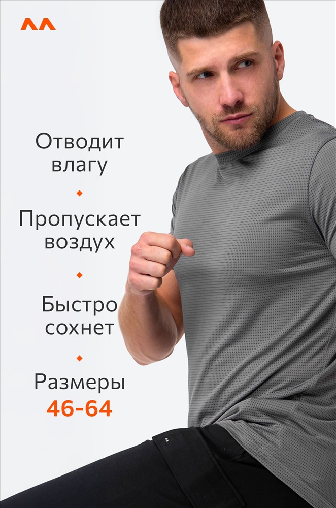 Серая футболка выполнена из полиэстера, она отлично пропускает воздух и отводит лишнюю влагу, позволяя сосредоточиться только на тренировочном процессе. Прохладная ткань дарит приятные тактильные ощущения, не намокает и не прилипает к телу даже при высоких нагрузках. Футболка антрацитового цвета легко отстирывается в прохладной воде, быстро высыхает и почти не мнется. Свободный крой дарит идеальную посадку и полную свободу движений. Спортивная футболка для мужчин рассчитана на интенсивные занятия и поможет повысить качество тренировок. Эту модель оценит каждый, кто заботится о своей физической форме. Легкая ткань с перфорацией создает необходимую вентиляцию. Мягкая горловина и аккуратные ровные швы обеспечивают отсутствие натираний и раздражений. Перфорированная футболка графитового цвета отлично подходит для тренажерного зала, для занятий фитнесом и для бега. Модель Артем, рост 172 см, параметры 113-82-100 см. На нем футболка 52 размера.