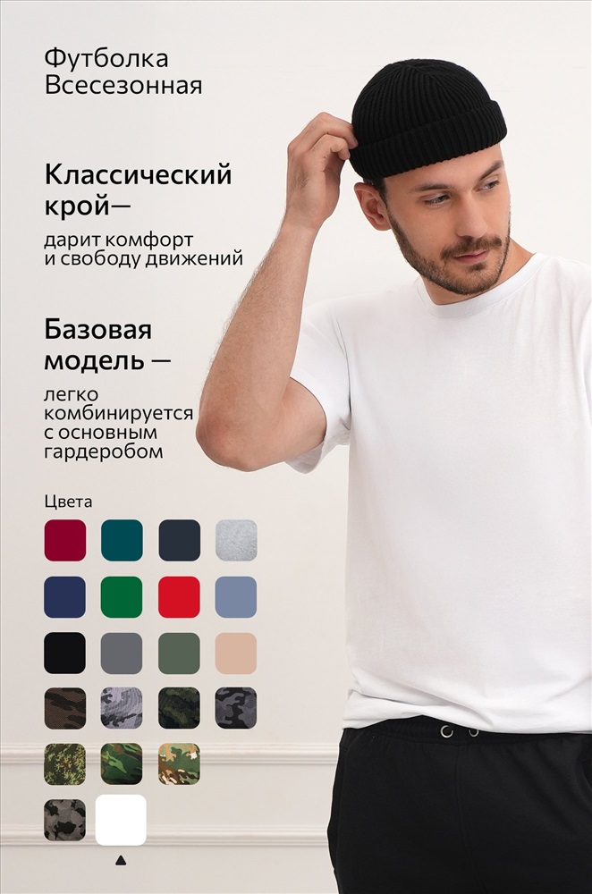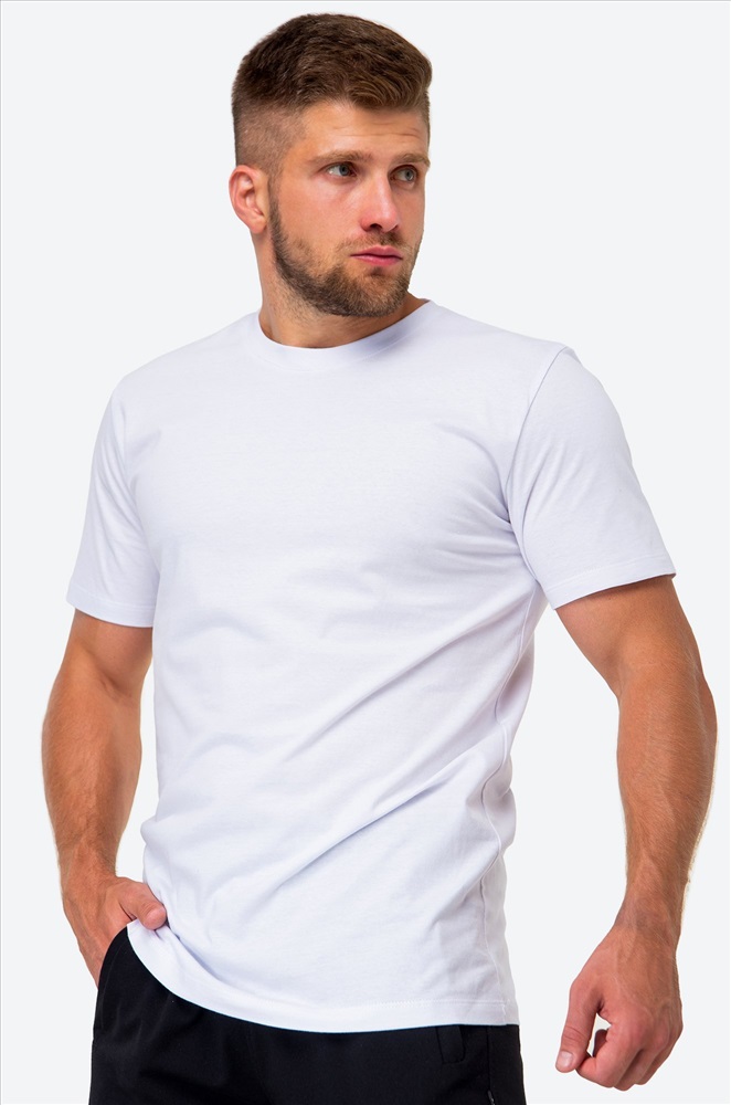 Однотонная мужская футболка в белом цвете — простая и стильная классика, которая всегда к месту. Хлопковая трикотажная ткань приятна на ощупь и дарит комфорт на каждый день.