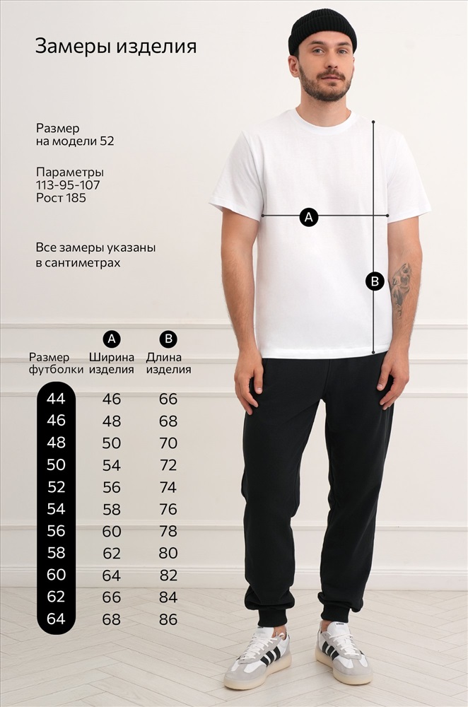 Преимущества: – 100% натуральный хлопок; – мягкий и дышащий трикотаж; – универсальный базовый дизайн; – однотонная расцветка для лёгкого сочетания; – надёжная форма и аккуратные швы; – есть большие размеры. Классический прямой крой и круглый вырез делают футболку удобной и практичной для мужчин. Базовая белая футболка гармонично впишется в любой повседневный образ, оставаясь универсальной. Рост модели 185 см, параметры: объем груди 113, объем талии 95, объем бедер 107 см. На нем размер 52.