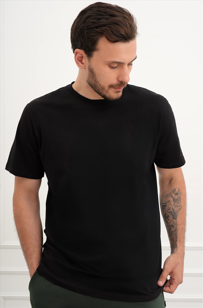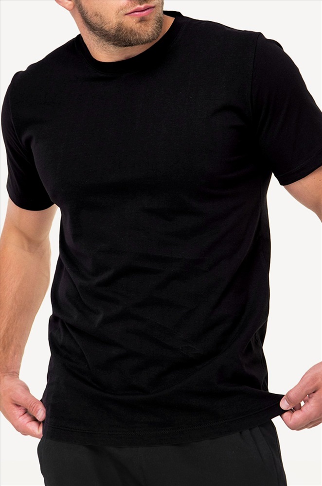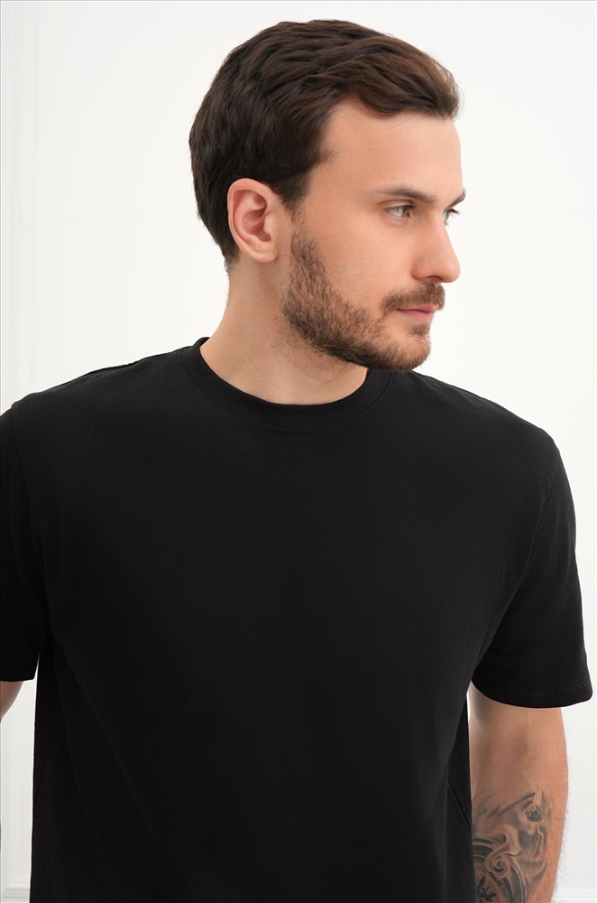 Однотонная черная футболка – тот случай, когда не нужно придумывать, что надеть. Мужская футболка идеальна для создания стильных повседневных образов. Классическая модель с коротким рукавом выполнена из натурального 100% хлопка.
