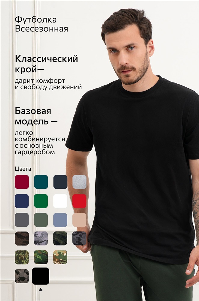 Базовая футболка из дышащего трикотажа супрем приятна к телу и отличается особым комфортом – идеальна для лета. Трикотажная футболка не боится стирок, надолго сохраняет первоначальный вид и яркость.