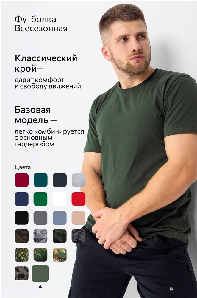 Базовая футболка из дышащего трикотажа супрем приятна к телу и отличается особым комфортом – идеальна для лета. Трикотажная футболка не боится стирок, надолго сохраняет первоначальный вид и яркость.