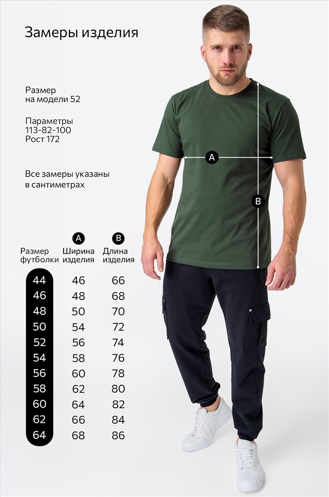 Модель Артем, его рост 172 см, параметры 113-82-100 см. На нем футболка 50 размера.