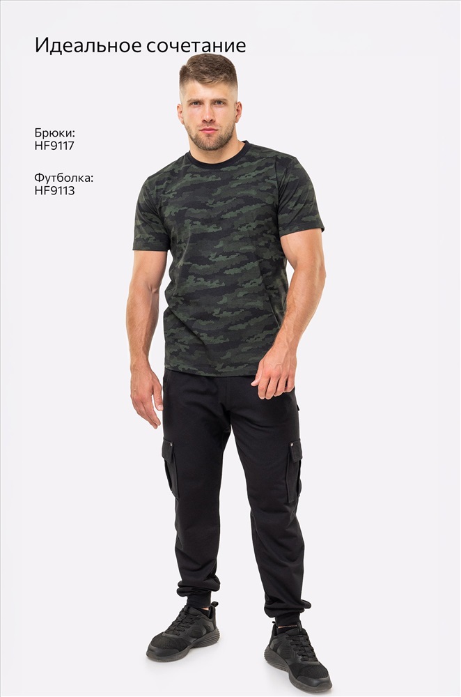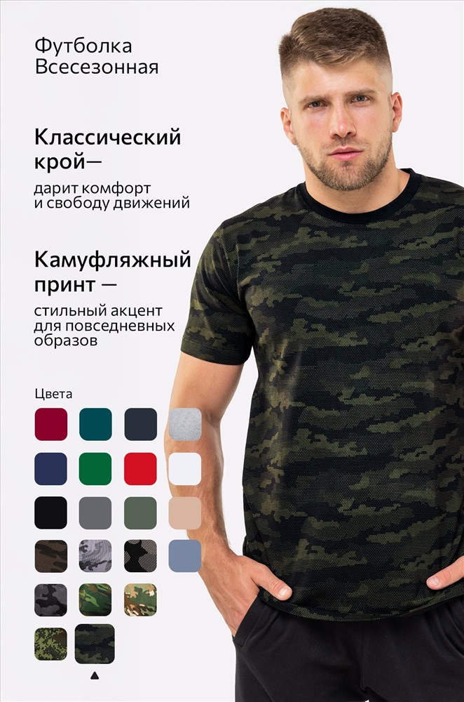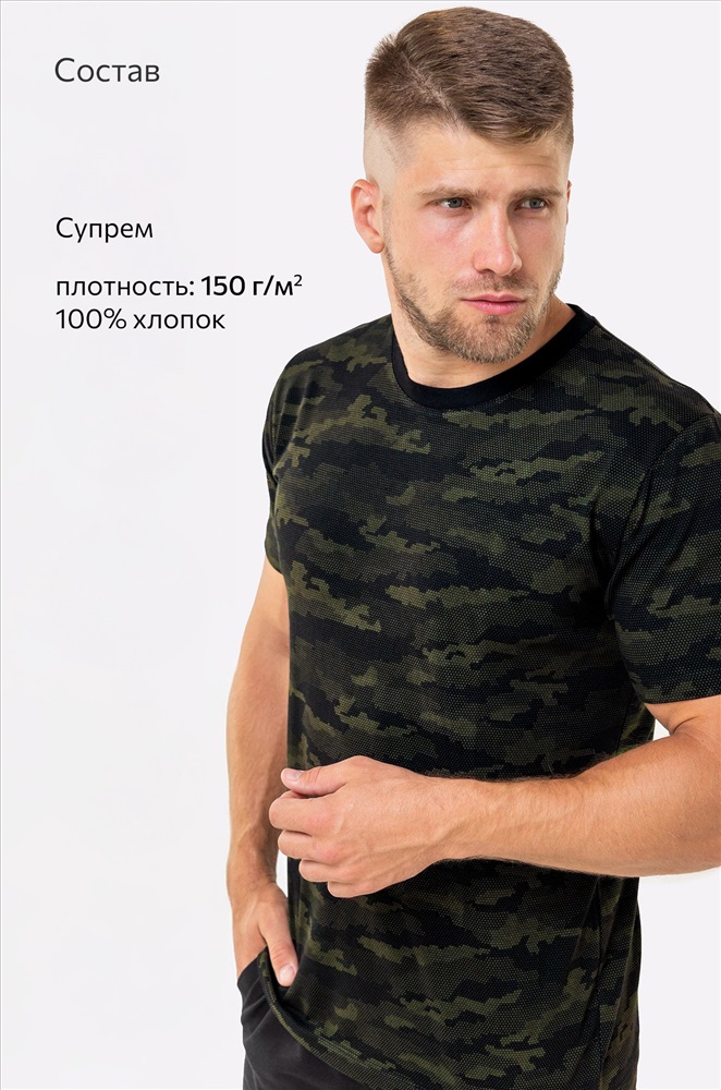 Мужская футболка в стиле милитари выполнена из 100% хлопка, ткань кулирная гладь. Трикотажная футболка прямого кроя с усиленным воротом – идеальный вариант для образов на каждый день.