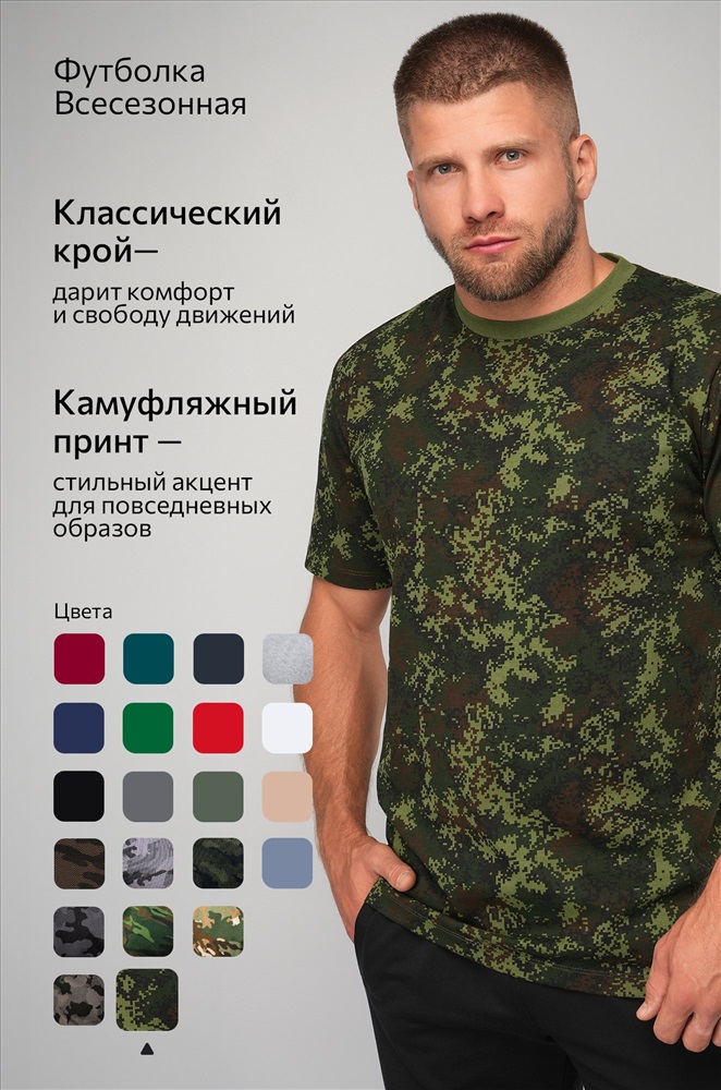 Футболка военный камуфляж отлично подойдет в качестве подарка для мужчин на 23 февраля. Армейская футболка из мягкого трикотажа – идеальный выбор для военных, охотников и рыбаков.