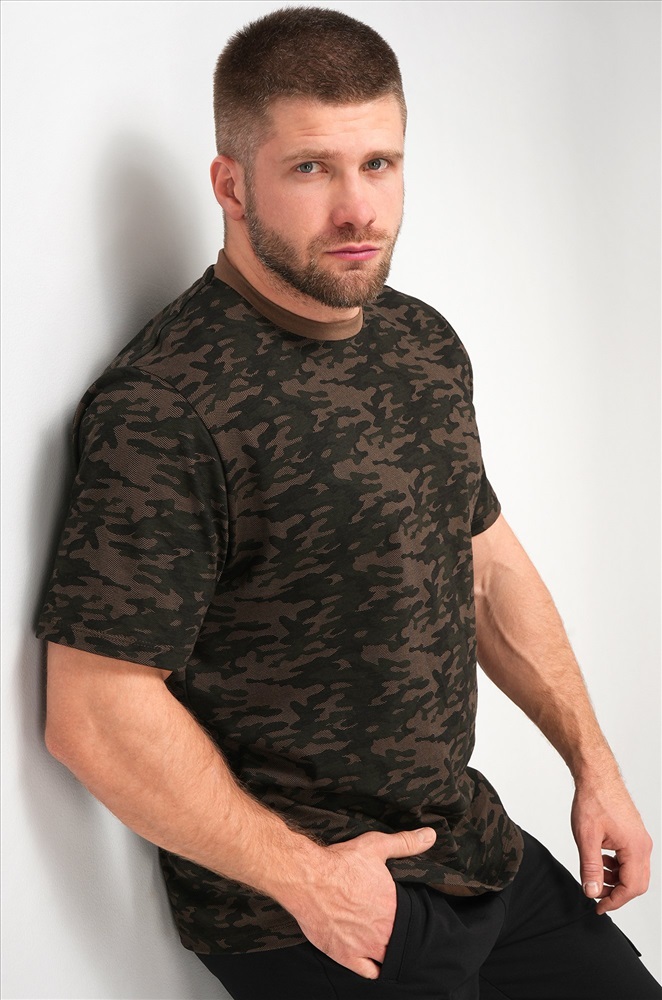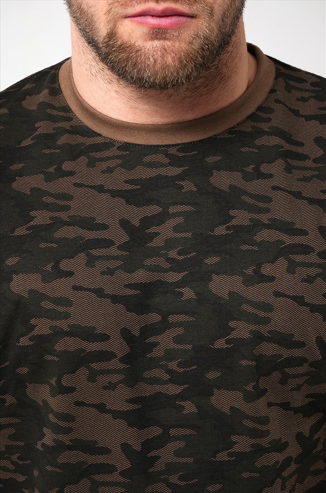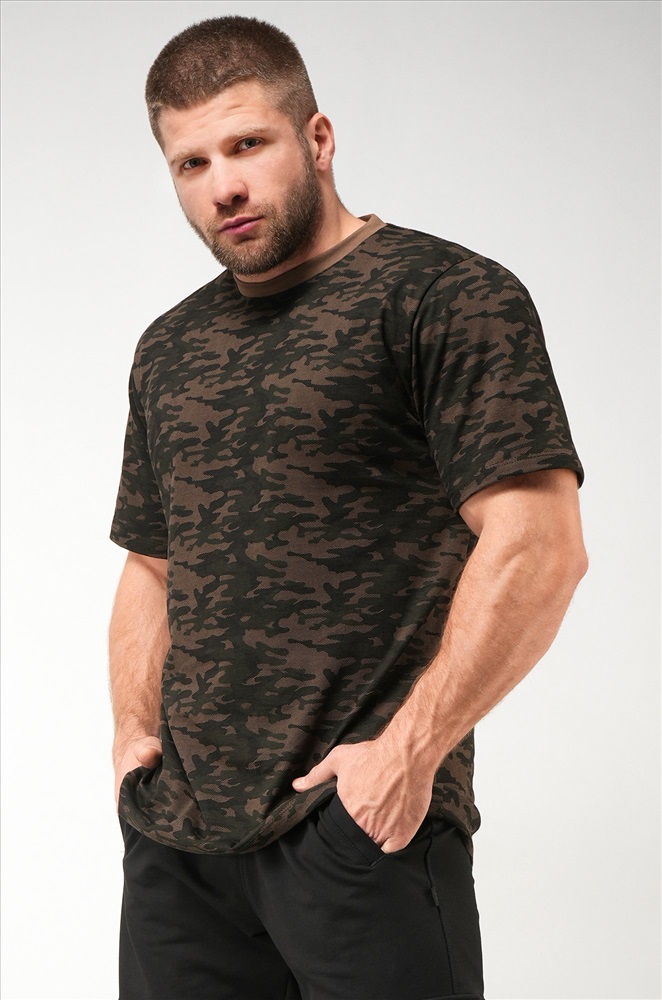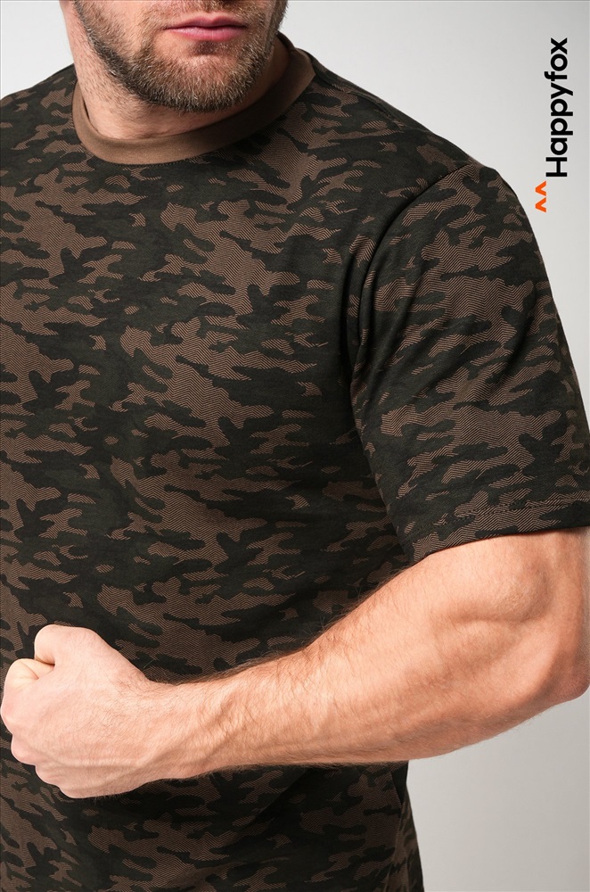 Тактическая футболка идеальна для походов, рыбалки, охоты и туризма. Хлопковая трикотажная ткань приятна на ощупь и дарит комфорт на каждый день. Мужская футболка представлена в цвете хаки с рисунком камуфляж.