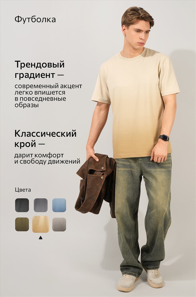 Футболка для мужчин в расцветке омбре идеальна для создания стильных и расслабленных образов.