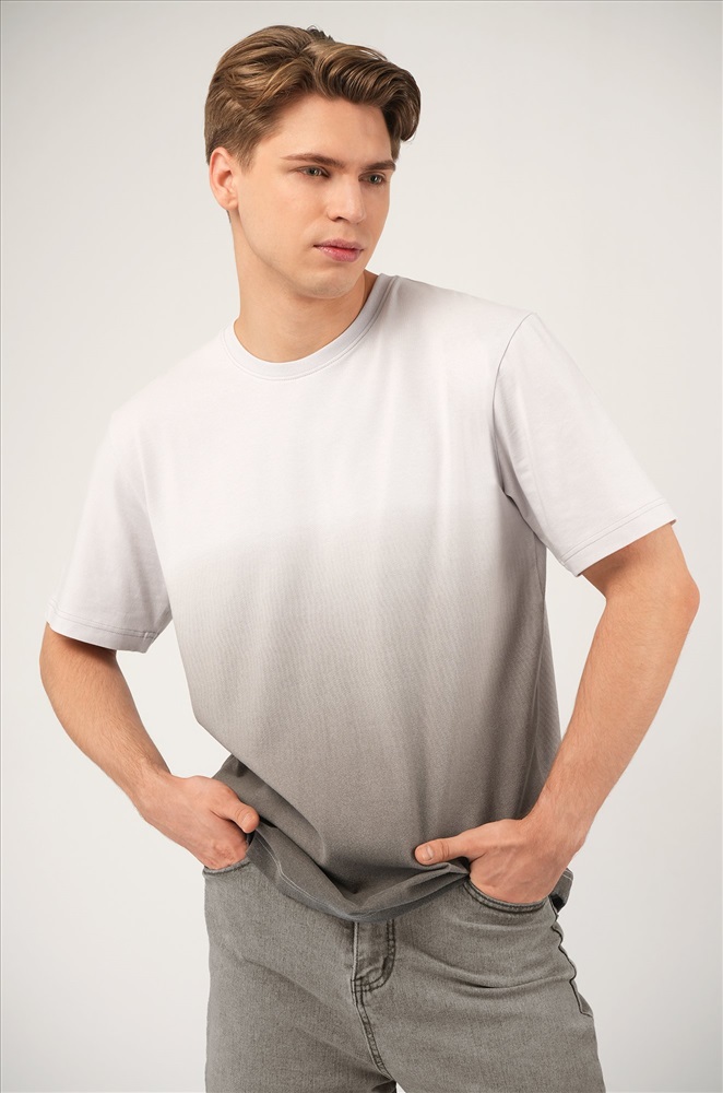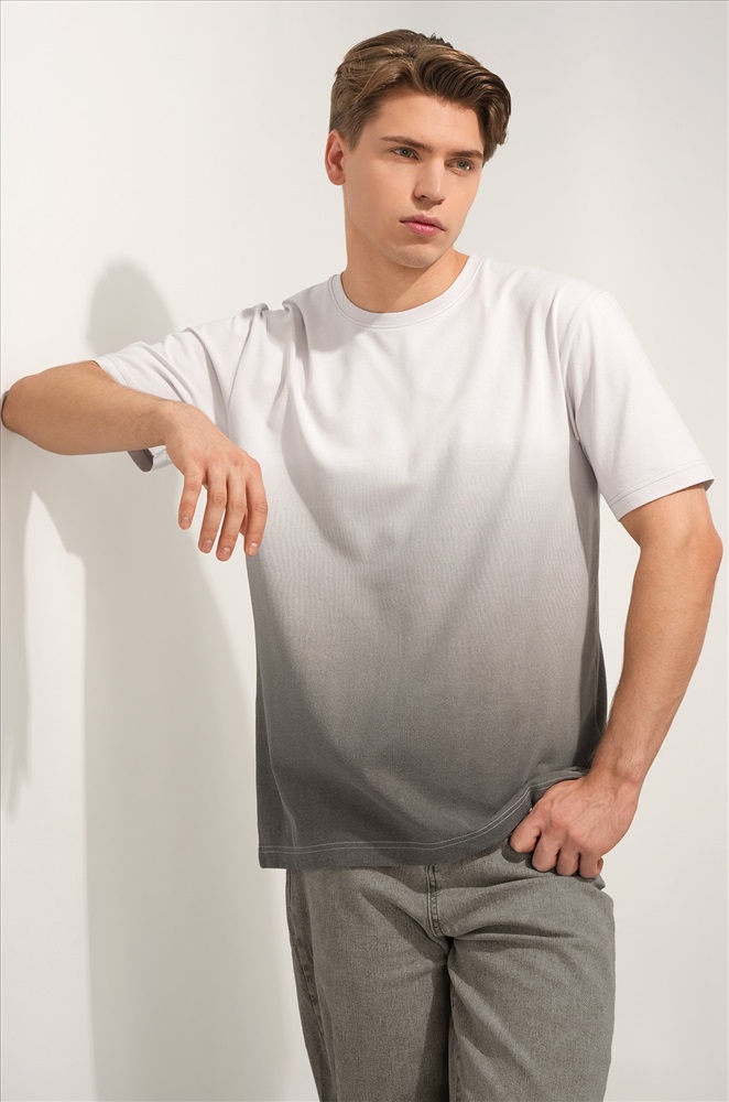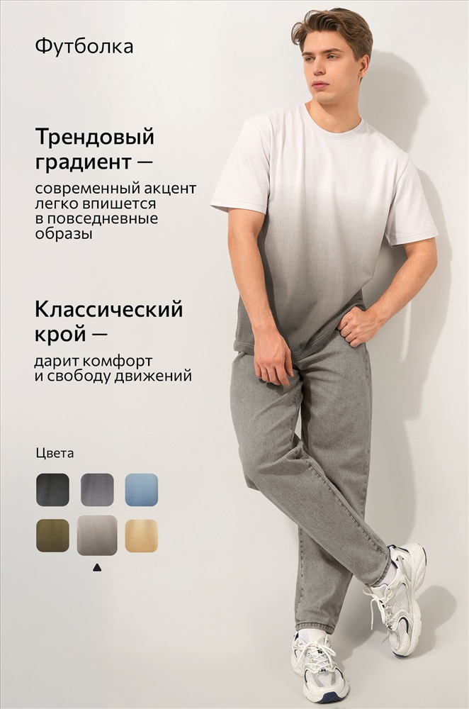 Футболка для мужчин в расцветке омбре идеальна для создания стильных и расслабленных образов.