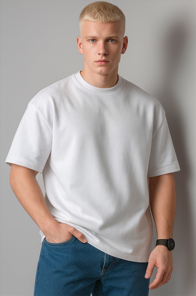 Преимущества: — натуральный хлопок с эластаном дарит мягкость, комфорт и лёгкую эластичность; — плотный трикотаж кулирная гладь (180 г/м²) сохраняет форму и приятен к телу; — крой оверсайз и спущенная линия плеча дарят свободу движений; — удлинённые рукава добавляют актуальности; — круглая горловина делает модель универсальной и подходящей для разных образов. Однотонная белая футболка для мужчин подойдёт для прогулок, встреч с друзьями или активного отдыха. Модель Артем, рост 172 см, параметры: 111-87-98. На нем размер 50.