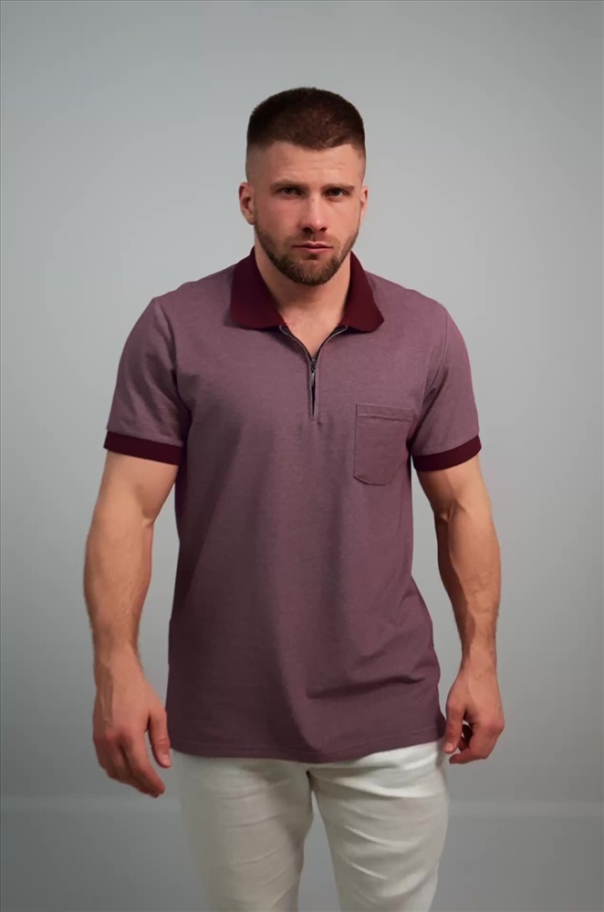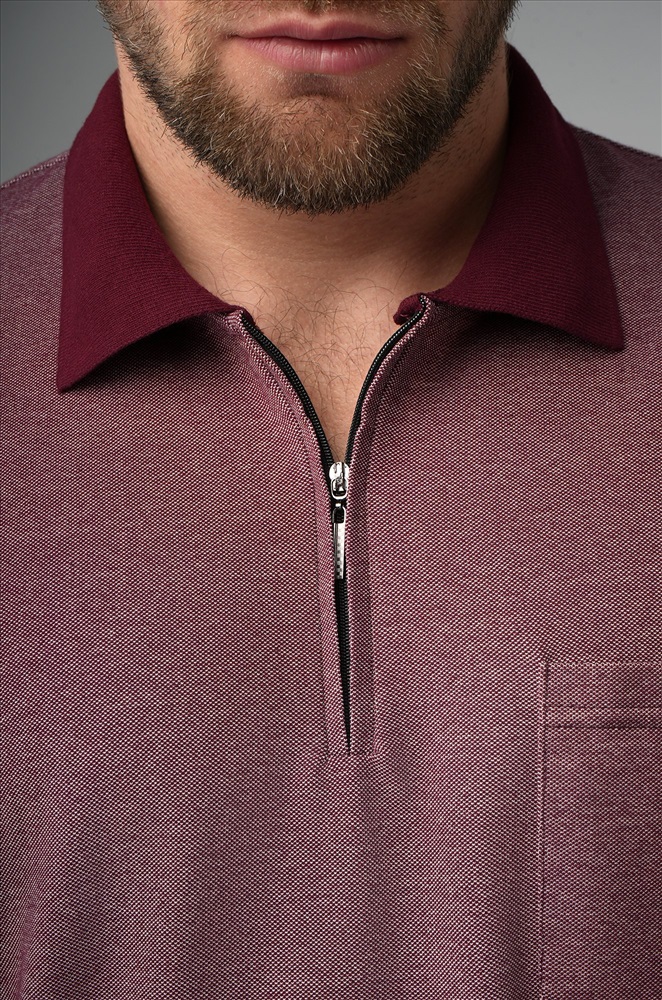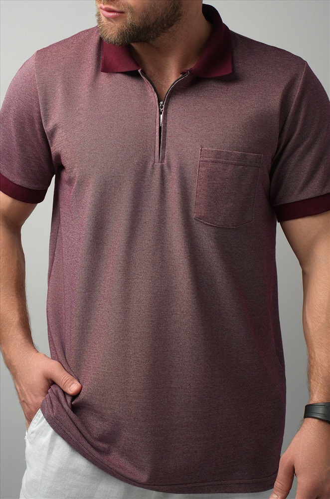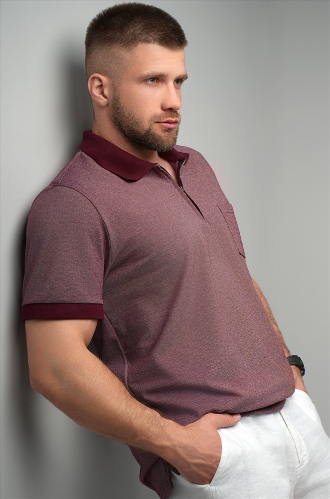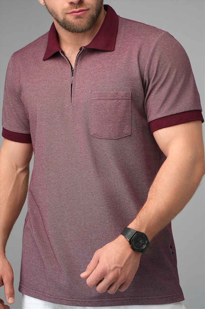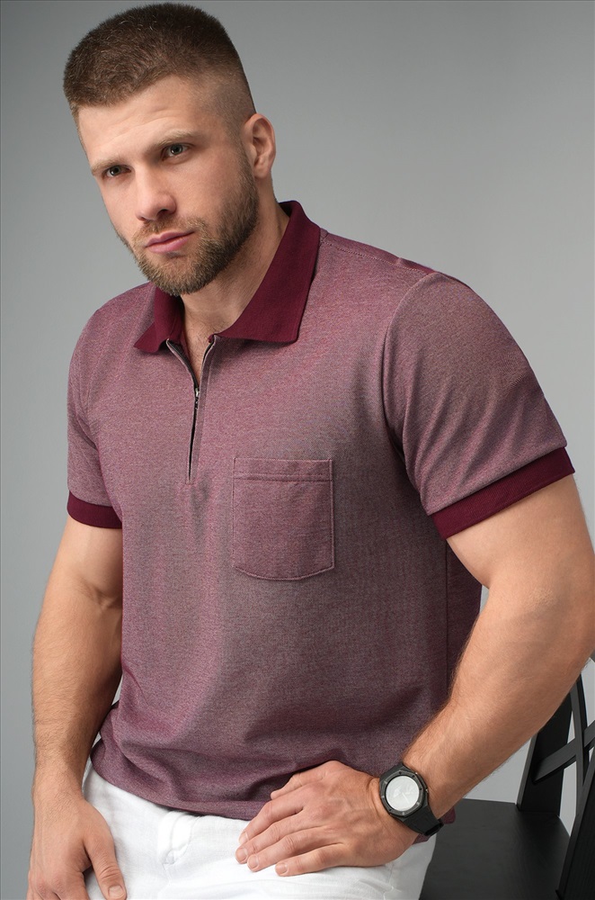 — бордовое поло на замке подходит для образов в стиле олд мани.