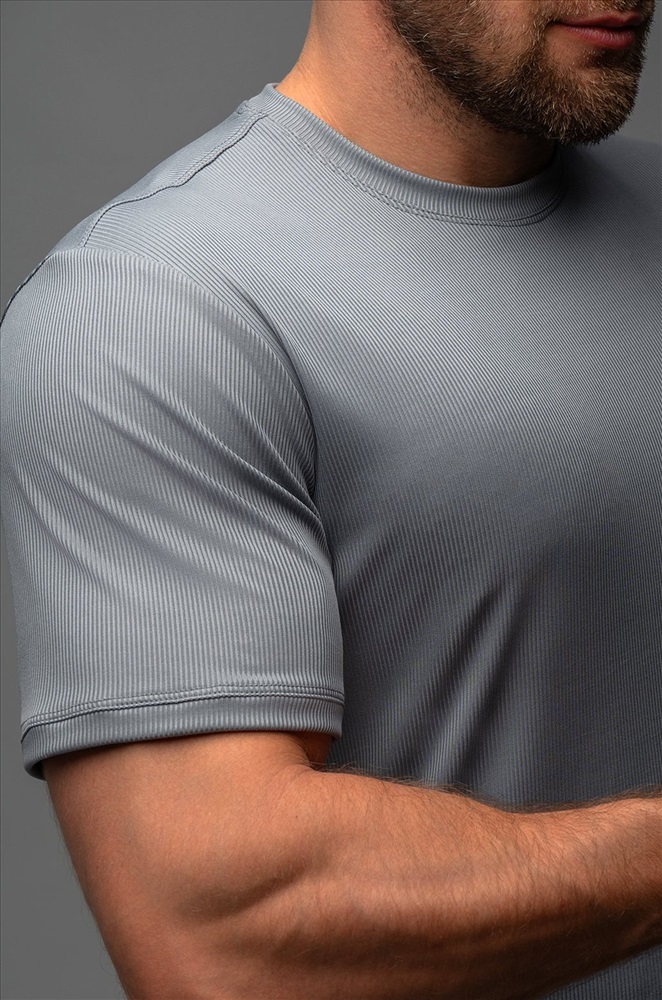 Однотонная мужская футболка в рубчик – отличное решение для спорта.