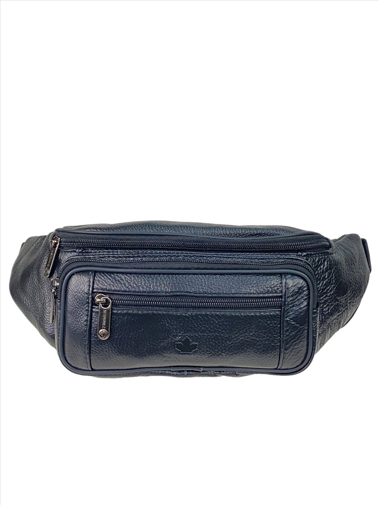 Сумка на пояс из натуральной кожи. Сумка вместительная одно основное отделение на молнии. На фронтальной стороне накладной карман на молнии и прорезной карман на молнии. На задней стороне карман на молнии. Ремень из плотной ткани, длина ремня регулируется. Сумку удобно носить как на поясе, так и на плече. Благодаря качественному материалу, поясная сумка прослужит долго и подойдёт в качестве модного аксессуара, а также подарка. Сумка достаточно компактная и легкая, поэтому ее удобно брать для повседневной носки, спорта или путешествий.