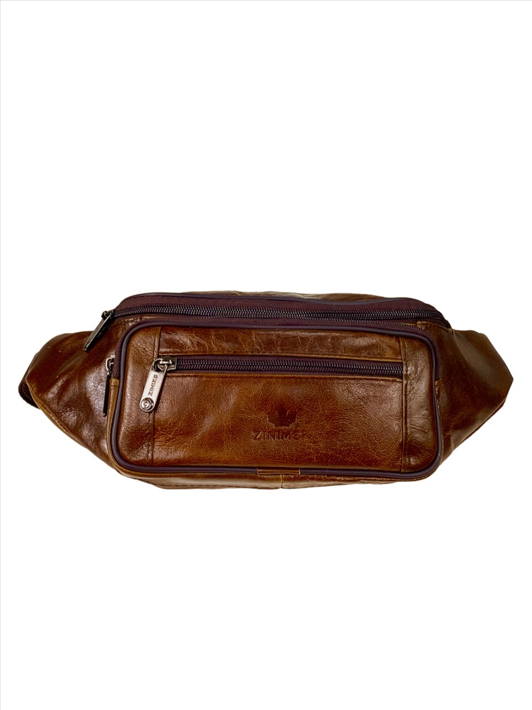 Сумка на пояс из натуральной кожи. Сумка вместительная одно основное отделение на молнии. На фронтальной стороне накладной карман на молнии и прорезной карман на молнии. На задней стороне карман на молнии. Ремень из плотной ткани, длина ремня регулируется. Сумку удобно носить как на поясе, так и на плече. Благодаря качественному материалу, поясная сумка прослужит долго и подойдёт в качестве модного аксессуара, а также подарка. Сумка достаточно компактная и легкая, поэтому ее удобно брать для повседневной носки, спорта или путешествий.