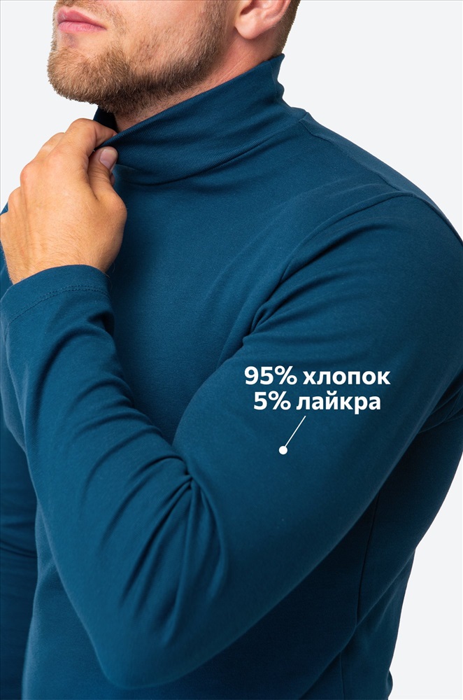 Базовая водолазка пыльносинего цвета из мягкого и приятного к телу хлопка для мужчин – сочетание стиля и комфорта на каждый день. Высокий ворот, длинные рукава и насыщенный цвет – главные составляющие идеальной мужской модели для этой осени. Облегающий крой добавляет образу харизмы, не сковывая движений и сохраняя привычный ритм жизни парня. Демисезонный лонгслив выполнен из нежной и легкой трикотажной ткани рибана, которая хорошо сохраняет тепло и делает его идеальным для прохладной осенней и весенней погоды. Благодаря лайкре в составе хлопковый джемпер отлично тянется и повторяет каждое движение тела. Ткань выдерживает многочисленные стирки и надолго сохраняет первоначальный внешний вид. Высокий воротник-стойка нежно прилегает к шее, длинные рукава защищают от ветра, а плоские анатомические швы не ощущаются в течение дня. Удлиненный силуэт и облегающий крой делают свитер стильным и акцентным. Однотонная водолазка поможет создать образ в любом стиле: классическом – деловой лук для работы в офисе и учебы, или образ в стиле smart casual (смарт кэжуал). Водолазка после стирки может давать усадку, при выборе размера просим обратить на это внимание. Модель Артем, его рост 172 см, параметры 113-82-100 см. На нем размер 52.
