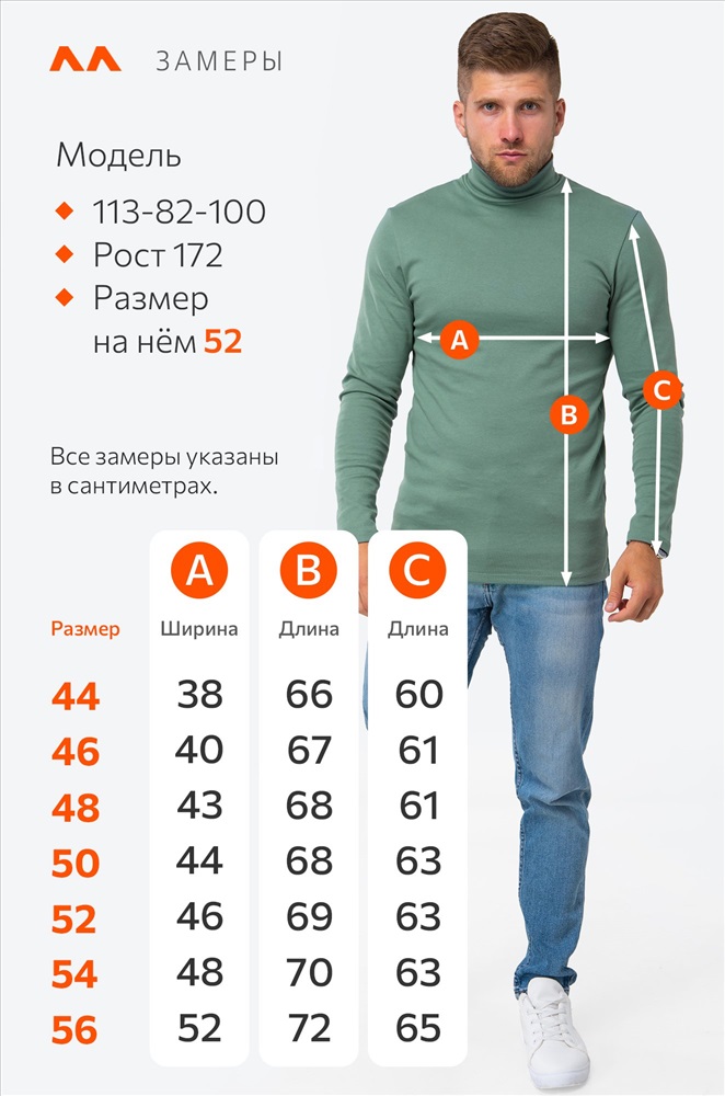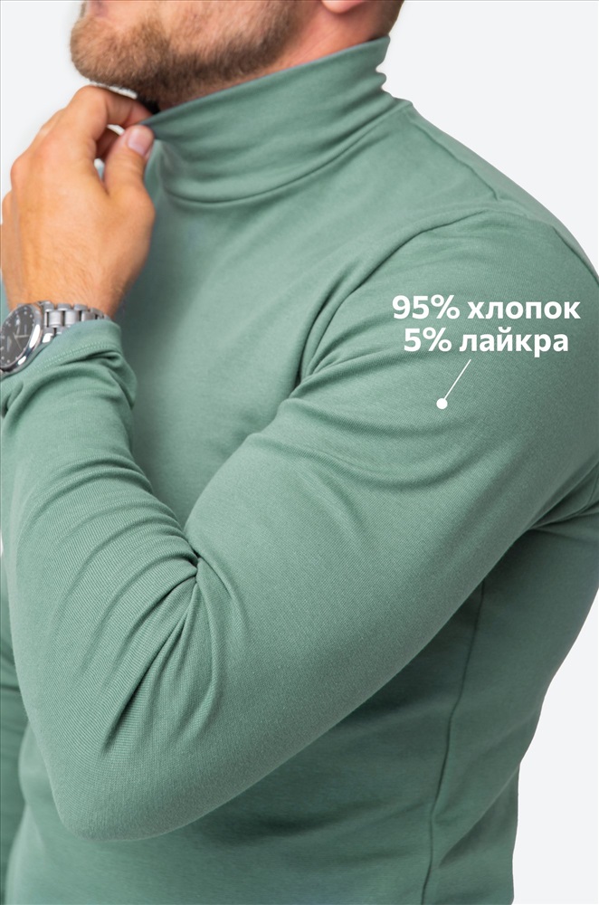 Базовая водолазка светло-зеленого цвета из мягкого и приятного к телу хлопка для мужчин – сочетание стиля и комфорта на каждый день. Высокий ворот, длинные рукава и насыщенный цвет – главные составляющие идеальной мужской модели для этой осени. Облегающий крой добавляет образу харизмы, не сковывая движений и сохраняя привычный ритм жизни парня. Демисезонный лонгслив выполнен из нежной и легкой трикотажной ткани рибана, которая хорошо сохраняет тепло и делает его идеальным для прохладной осенней и весенней погоды. Благодаря лайкре в составе хлопковый джемпер отлично тянется и повторяет каждое движение тела. Ткань выдерживает многочисленные стирки и надолго сохраняет первоначальный внешний вид. Высокий воротник-стойка нежно прилегает к шее, длинные рукава защищают от ветра, а плоские анатомические швы не ощущаются в течение дня. Удлиненный силуэт и облегающий крой делают свитер стильным и акцентным. Однотонная водолазка поможет создать образ в любом стиле: классическом – деловой лук для работы в офисе и учебы, или образ в стиле smart casual (смарт кэжуал). Водолазка после стирки может давать усадку, при выборе размера просим обратить на это внимание. Модель Артем, его рост 172 см, параметры 113-82-100 см. На нем размер 52. Размер 44: длина:66 см; ширина:38 см; длина рукава внешняя:60 см; длина рукава внутренняя:48 см. Размер 46: длина:67 см; ширина:40 см; длина рукава внешняя:61 см; длина рукава внутренняя:50 см. Размер 48: длина:68 см; ширина:43 см; длина рукава внешняя:61 см; длина рукава внутренняя:50 см. Размер 50: длина:68 см; ширина:44 см; длина рукава внешняя:63 см; длина рукава внутренняя:51 см. Размер 52: длина:69 см; ширина:46 см; длина рукава внешняя:63 см; длина рукава внутренняя:51 см. Размер 54: длина:70 см; ширина:48 см; длина рукава внешняя:63 см; длина рукава внутренняя:51 см. Размер 56: длина:72 см; ширина:52 см; длина рукава внешняя:65 см; длина рукава внутренняя:52 см. *замеры выборочные, могут незначительно отличаться. Комментарии к товару