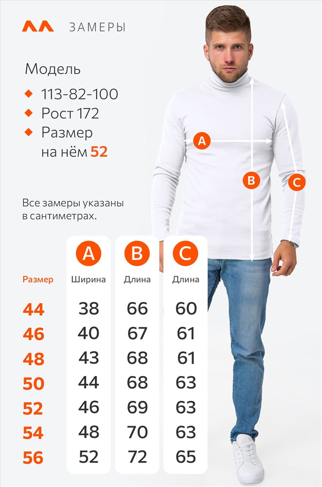 Водолазка после стирки может давать усадку, при выборе размера просим обратить на это внимание. Модель Артем, его рост 172 см, параметры 113-82-100 см. На нем размер 52.