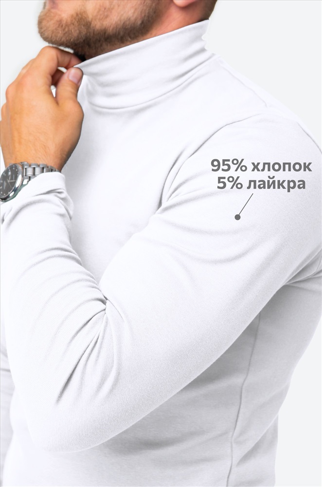 Сделайте выбор в пользу классики и комфорта! Базовая водолазка белого цвета из мягкого и приятного к телу хлопка для мужчин – сочетание стиля и комфорта на каждый день. Высокий ворот, длинные рукава и чистый цвет – главные составляющие идеальной мужской модели для этой осени. Облегающий крой добавляет образу харизмы, не сковывая движений и сохраняя привычный ритм жизни парня. Демисезонный лонгслив выполнен из нежной и легкой трикотажной ткани рибана, которая хорошо сохраняет тепло и делает его идеальным для прохладной осенней и весенней погоды. Благодаря лайкре в составе хлопковый джемпер отлично тянется и повторяет каждое движение тела. Ткань выдерживает многочисленные стирки и надолго сохраняет первоначальный внешний вид. Высокий воротник-стойка нежно прилегает к шее, длинные рукава защищают от ветра, а плоские анатомические швы не ощущаются в течение дня. Удлиненный силуэт и облегающий крой делают свитер стильным и акцентным. Однотонная водолазка поможет создать образ в любом стиле: классическом – деловой лук для работы в офисе и учебы, или образ в стиле smart casual (смарт кэжуал).