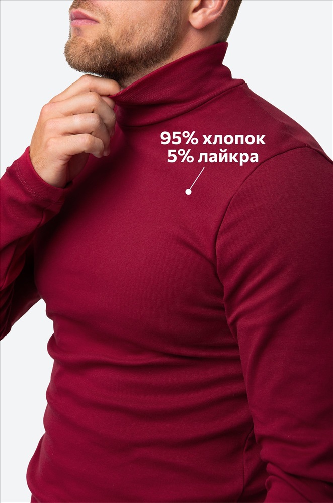 Базовая мужская водолазка бордового цвета из мягкого и приятного к телу хлопка – прекрасный вариант на каждый день. Высокий ворот, длинные рукава и насыщенный цвет идеально дополняют друг друга. Демисезонный красный бадлон для мужчин выполнен из нежной и легкой трикотажной ткани рибана, которая хорошо сохраняет тепло и делает его идеальным для прохладной осенней и весенней погоды. Благодаря лайкре в составе водолазка вишневого цвета отлично тянется и повторяет каждое движение тела. Высокий воротник-стойка нежно прилегает к шее и не пережимает горло. Длинные рукава защищают от ветра, а плоские анатомические швы не ощущаются в течение дня. Удлиненный силуэт и облегающий крой делают водолазку стильным и акцентным. Однотонная водолазка оттенка бургунди впишется в офисный стиль и стиль смарт кэжуал (smart casual). Водолазка из трикотажа подойдет для весны и осени, а в холодные зимние дни станет основой многослойных образов. Модель Артем, его рост 172, параметры: 113-82-100 см. На нем размер 52. Размер 44: длина:66 см; ширина:38 см; длина рукава внешняя:60 см; длина рукава внутренняя:48 см. Размер 46: длина:67 см; ширина:40 см; длина рукава внешняя:61 см; длина рукава внутренняя:50 см. Размер 48: длина:68 см; ширина:43 см; длина рукава внешняя:61 см; длина рукава внутренняя:50 см. Размер 50: длина:68 см; ширина:44 см; длина рукава внешняя:63 см; длина рукава внутренняя:51 см. Размер 52: длина:69 см; ширина:46 см; длина рукава внешняя:63 см; длина рукава внутренняя:51 см. Размер 54: длина:70 см; ширина:48 см; длина рукава внешняя:63 см; длина рукава внутренняя:51 см. Размер 56: длина:72 см; ширина:52 см; длина рукава внешняя:65 см; длина рукава внутренняя:52 см. *замеры выборочные, могут незначительно отличаться. Комментарии к товару