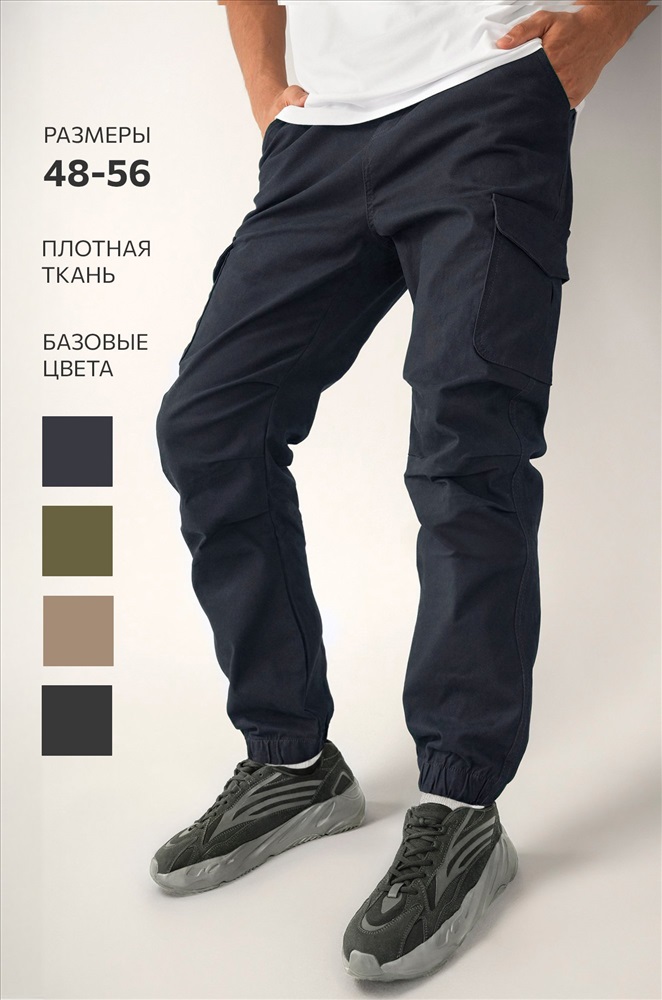 Темно-синие мужские брюки джоггеры в стиле карго — универсальный выбор для динамичных и уверенных образов. Практичные и удобные, они легко вписываются в спортивный стиль и повседневные комбинации.