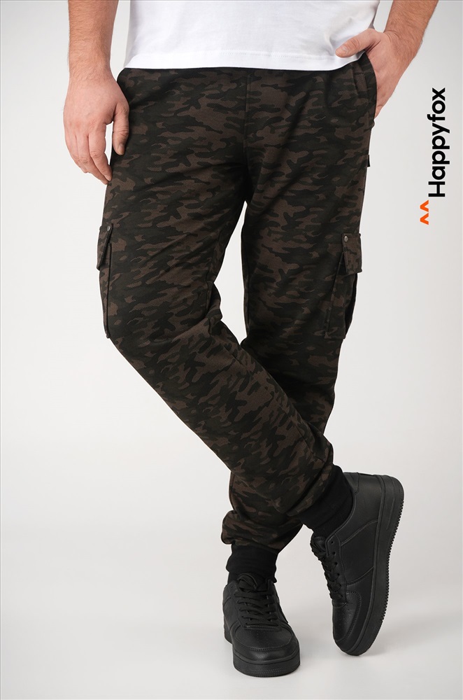 Камуфляжные брюки джоггеры — отличное решение для любителей охоты, рыбалки и туризма. Благодаря добавлению полиэстера мужские брюки из футера двухнитки мягкие и прочные, что делает их идеальным выбором для дачи и активного отдыха на природе. Трикотажные спортивные штаны выполнены в защитном цвете хаки с рисунком в стиле милитари.