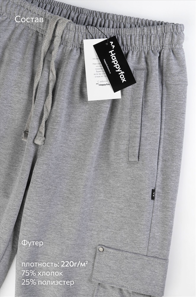 Бренд: Happyfox Страна: Узбекистан Состав: 75% хлопок, 25% полиэстер Материал: Футер двухнитка Плотность ткани: 220 г/м2 Цвет: серыймеланж