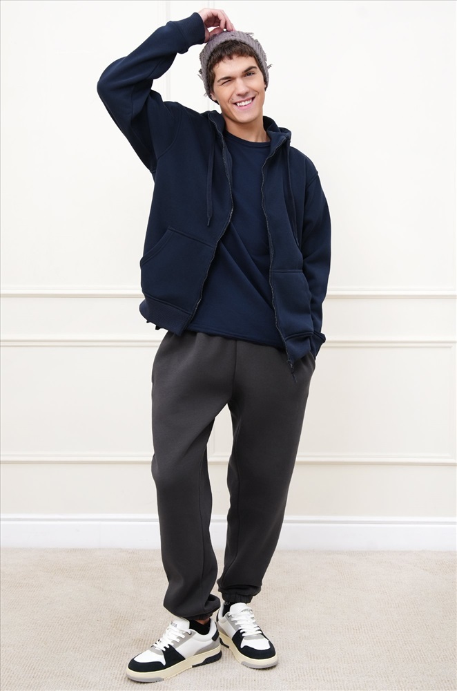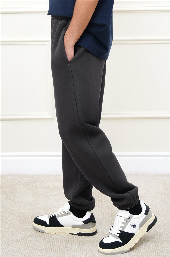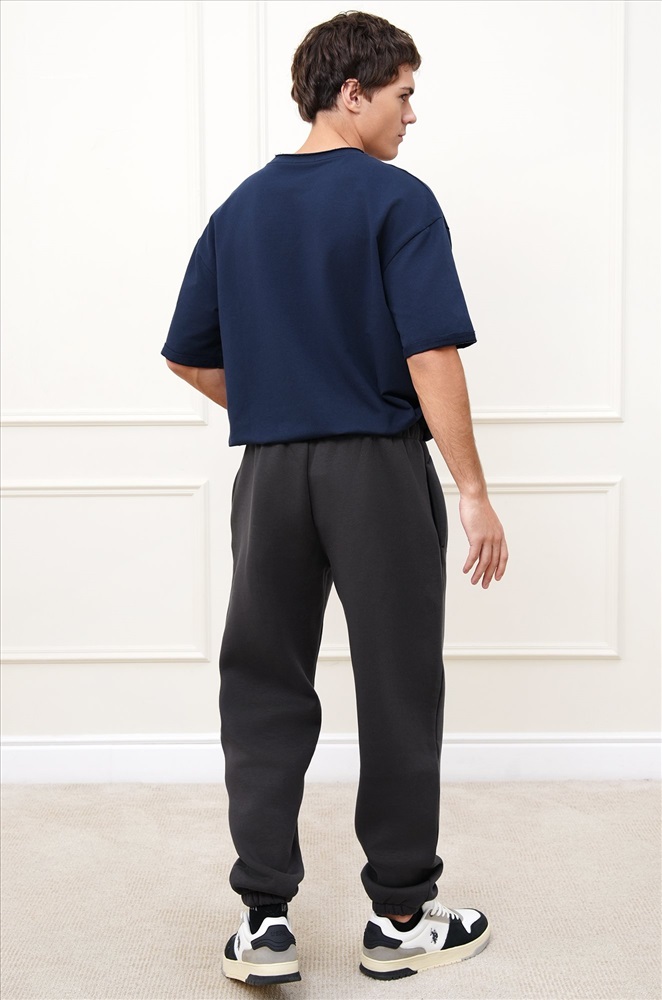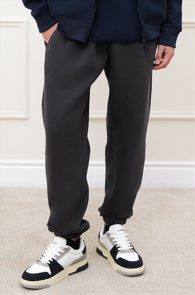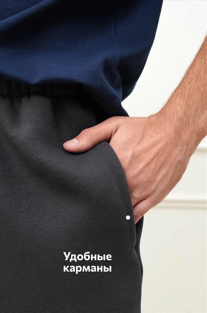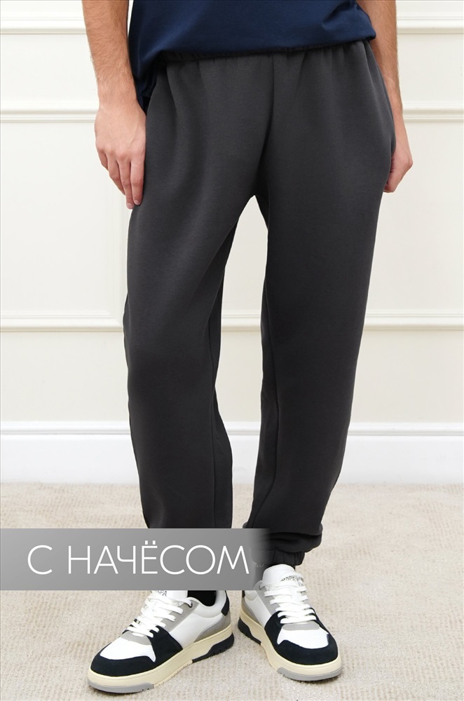 Теплые мужские брюки джоггеры выполнены из трикотажа футер с начёсом. Однотонные штаны в темно-сером цвете подойдут для спорта на улице, активного отдыха и повседневных прогулок.