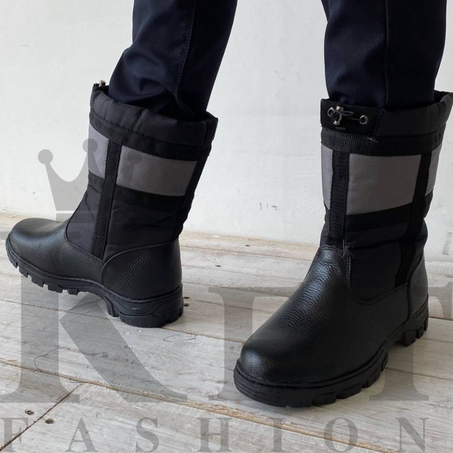 Наружняя сторона голенища – плотный оксфорд Внутренняя часть – натуральная овчина Союзка – натуральная кожа Размеры: с 38 по 46 Виды подошвы: литая подошва Наличии молнии: нет Высота: ~30см. Страна производитель: Россия