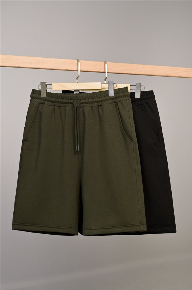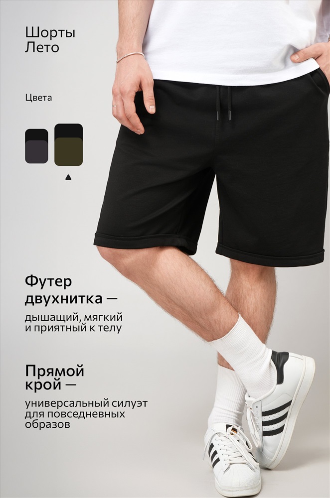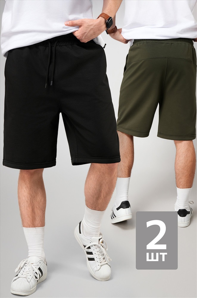 — комплект мужских шорт включает два базовых цвета: черные и хаки;