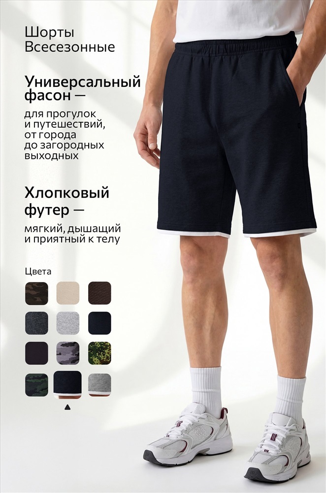 Преимущества: — практичный однотонный цвет легко сочетается с базовым гардеробом; — комфортный прямой крой и эластичный пояс с регулировкой внутренним шнурком; — мягкая дышащая ткань футер двухнитка из хлопка с полиэстером (плотность 220 г/м2); — длинные шорты для мужчин обеспечивают комфорт и свободу движений; — функциональный дизайн с удобными карманами для повседневных дел. Темно-синие хлопковые трикотажные шорты станут отличным решением для дома, активного отдыха летом и спортивных тренировок.