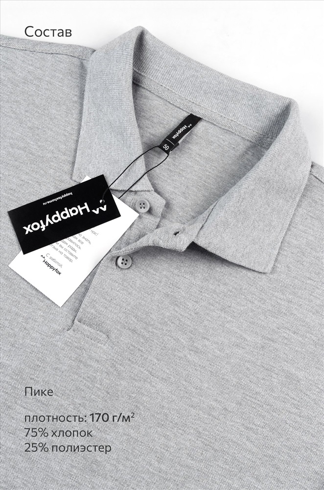 Бренд: Happyfox Страна: Узбекистан Состав: 75% хлопок, 25% полиэстер Материал: Пике Плотность ткани: 170 г/м2 Цвет: серыймеланж