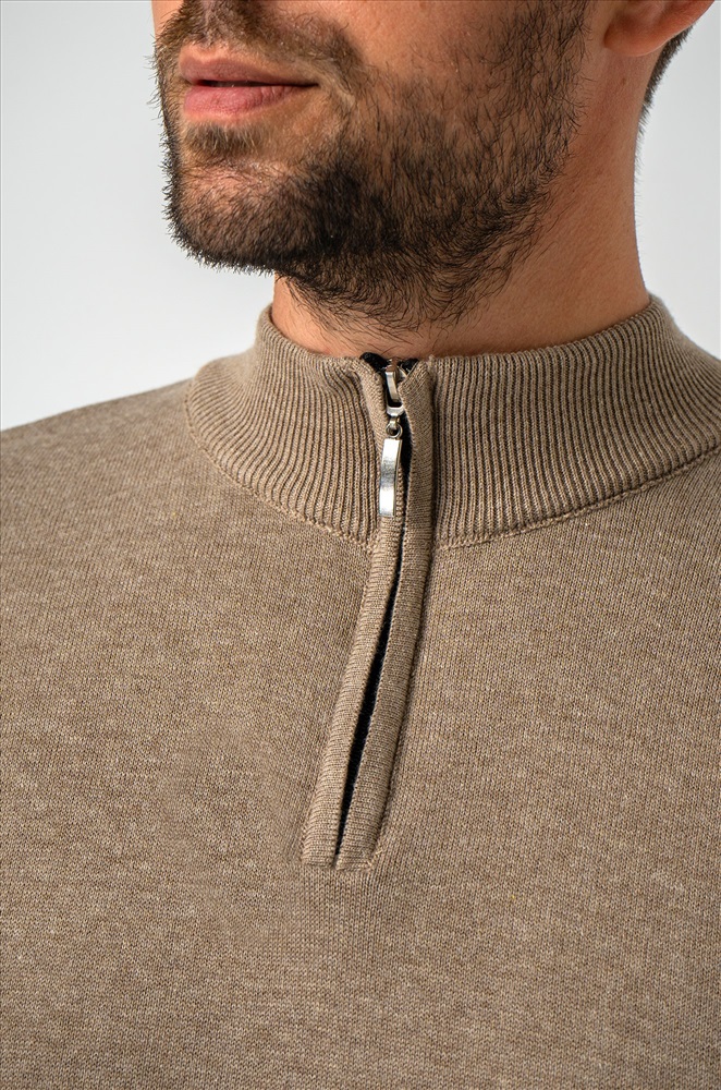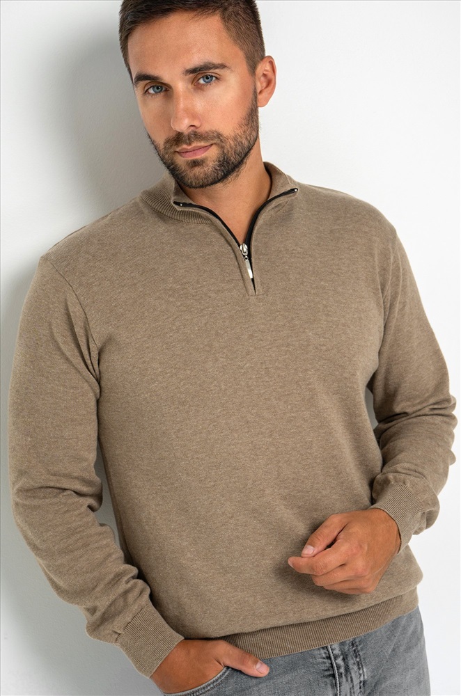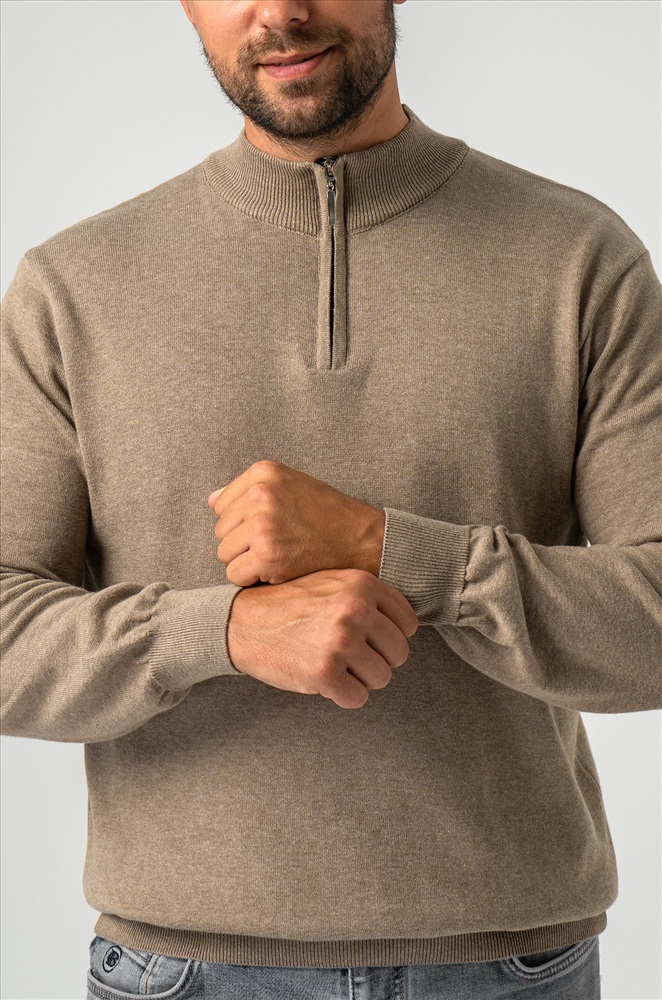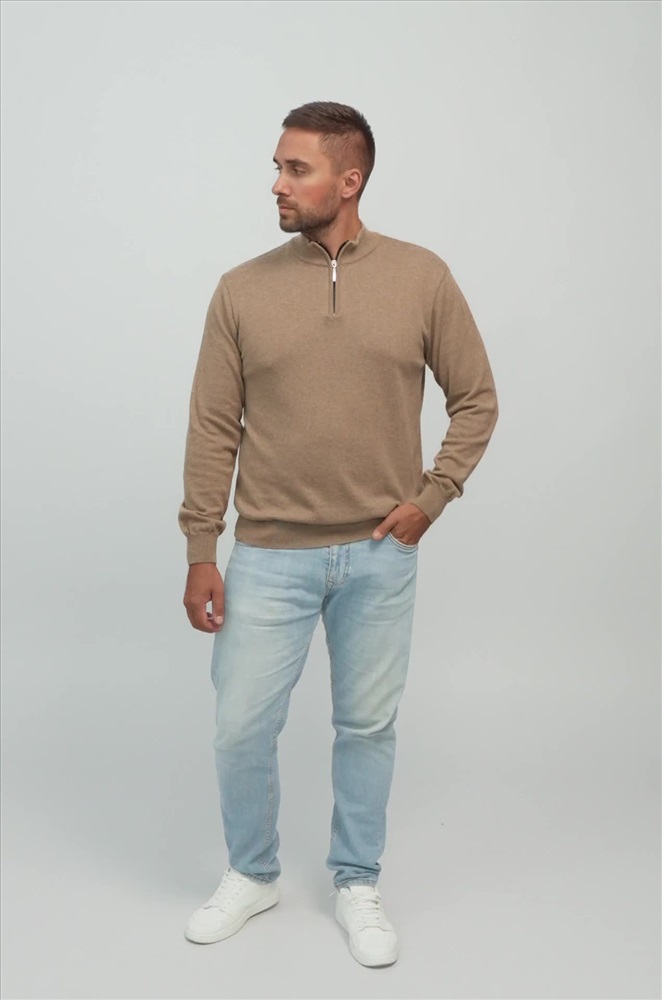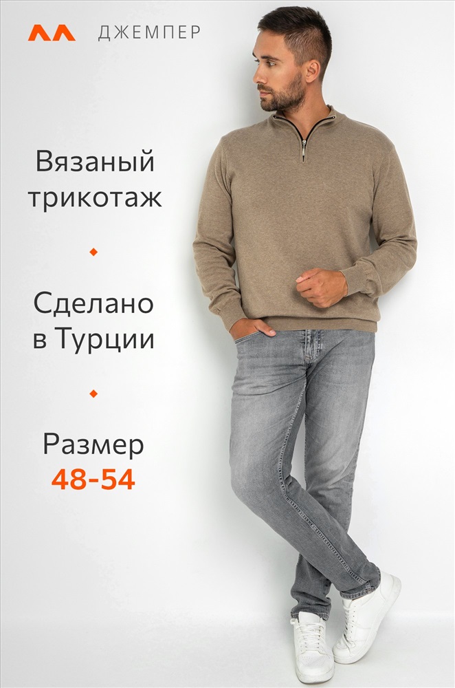 Бежевый мужской джемпер станет незаменимой частью вашего гардероба на осень и весну. Демисезонный свитер создан для мужчин, которые ценят качество и универсальность. Прямой крой, ворот стойка с застежкой на молнию добавляют классический штрих, делая его подходящим как для повседневных, так и для более официальных образов. Сочетание хлопка и акрила придает мужской водолазке комфорт и долговечность. Вязаный трикотаж отлично сохраняет тепло, делая джемпер теплым и приятным на ощупь. Трикотажное полотно дарит уют и мягкость, а также позволяет телу дышать, что особенно важно в осенний, зимний и весенний периоды. Классический прямой крой и длинные рукава на манжетах делают однотонный джемпер универсальным для любого случая. Воротник-стойка с молнией добавляет современный акцент, сохраняя при этом элегантный вид. Коричневая водолазка легко сочетается с различными стилями, подчеркивая ваш безупречный вкус. Джемпер подходит для мужчин с размером от 48 до 54, что делает его отличным выбором для большинства. Стильный вариант станет надежным спутником в прохладное время года, даря тепло и комфорт в любых ситуациях. Модель Андрей, рост 187 см, параметры 113-95-109 см. На нем размер 54.