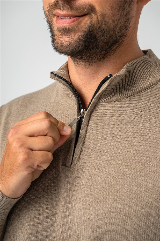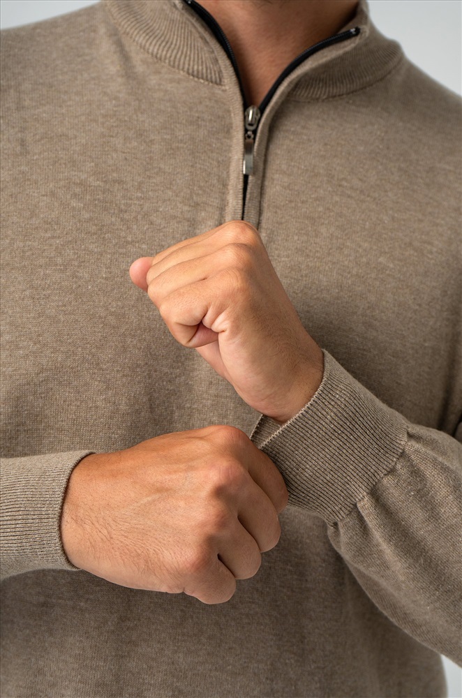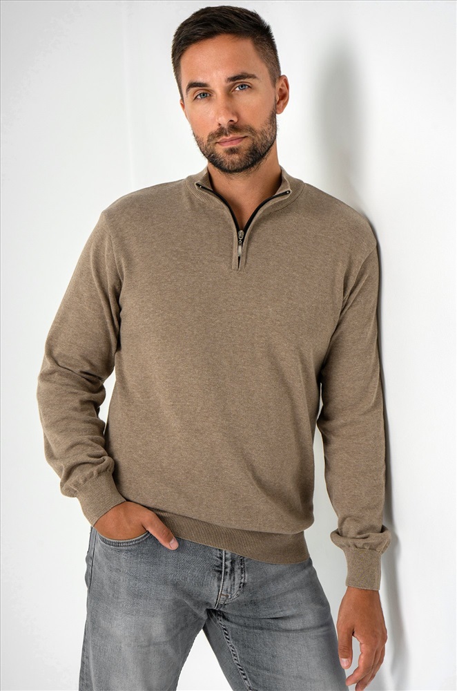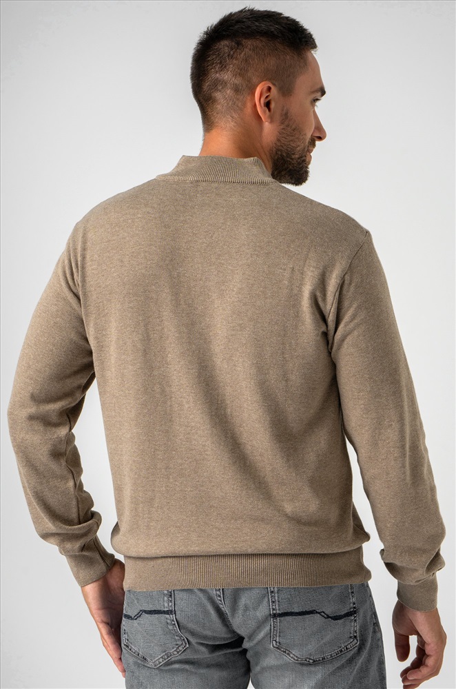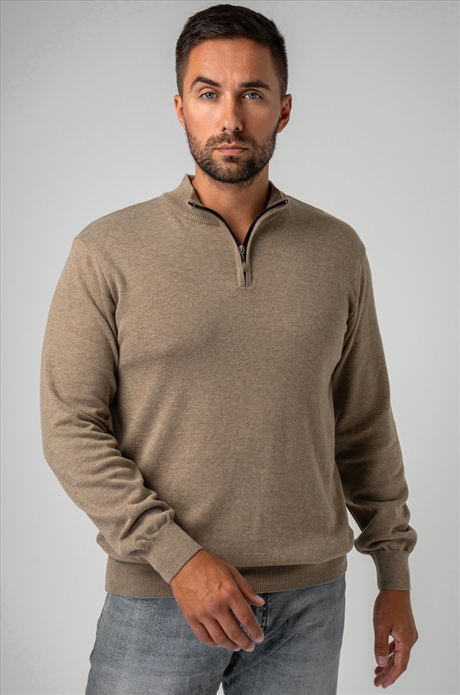 Бежевый мужской джемпер станет незаменимой частью вашего гардероба на осень и весну. Демисезонный свитер создан для мужчин, которые ценят качество и универсальность. Прямой крой, ворот стойка с застежкой на молнию добавляют классический штрих, делая его подходящим как для повседневных, так и для более официальных образов. Сочетание хлопка и акрила придает мужской водолазке комфорт и долговечность. Вязаный трикотаж отлично сохраняет тепло, делая джемпер теплым и приятным на ощупь. Трикотажное полотно дарит уют и мягкость, а также позволяет телу дышать, что особенно важно в осенний, зимний и весенний периоды. Классический прямой крой и длинные рукава на манжетах делают однотонный джемпер универсальным для любого случая. Воротник-стойка с молнией добавляет современный акцент, сохраняя при этом элегантный вид. Коричневая водолазка легко сочетается с различными стилями, подчеркивая ваш безупречный вкус. Джемпер подходит для мужчин с размером от 48 до 54, что делает его отличным выбором для большинства. Стильный вариант станет надежным спутником в прохладное время года, даря тепло и комфорт в любых ситуациях. Модель Андрей, рост 187 см, параметры 113-95-109 см. На нем размер 54.