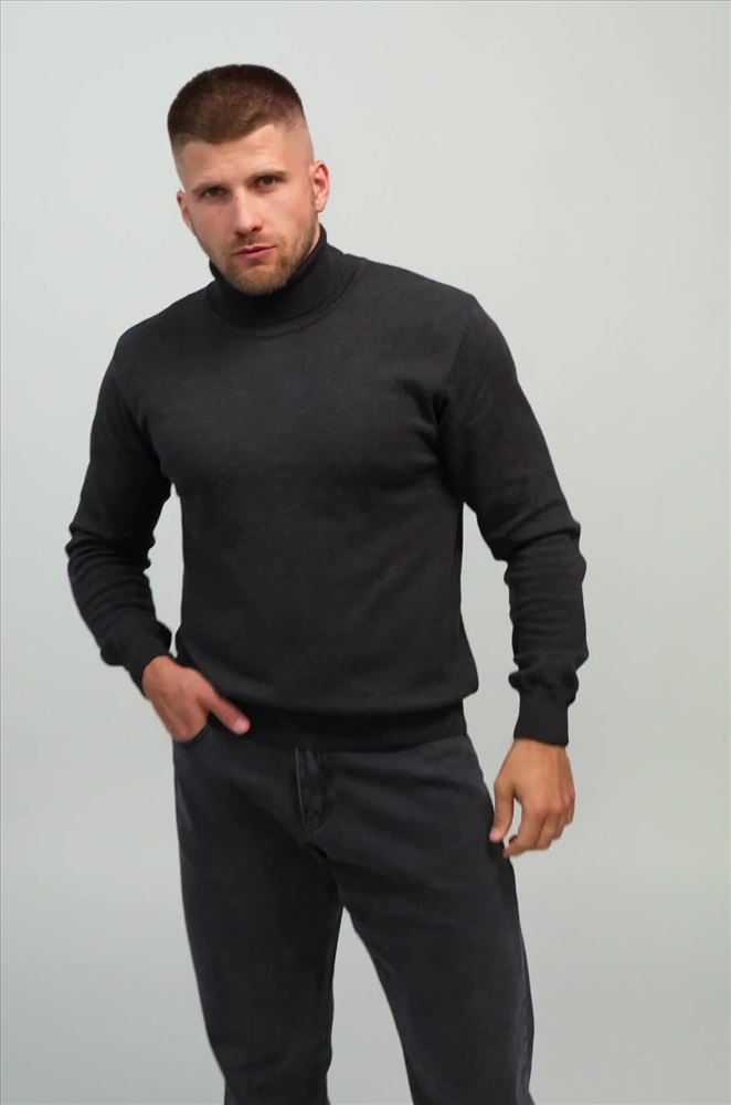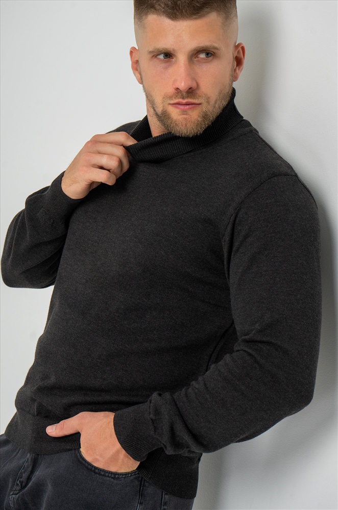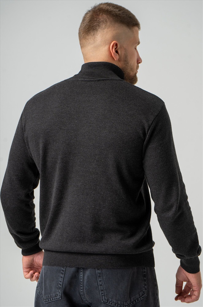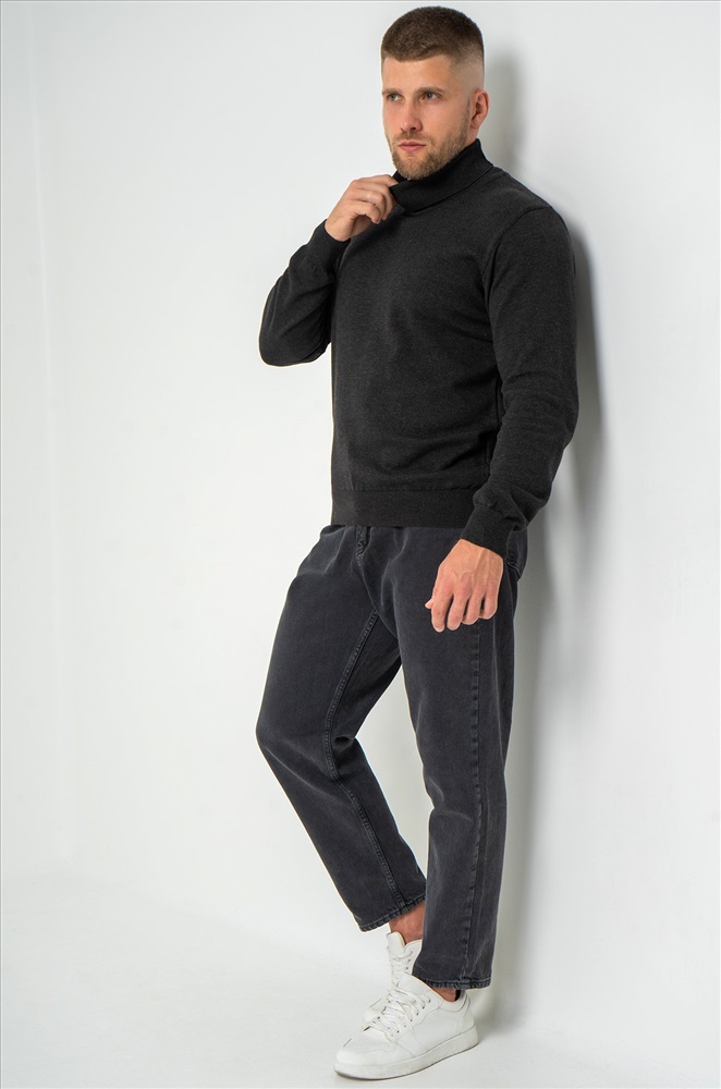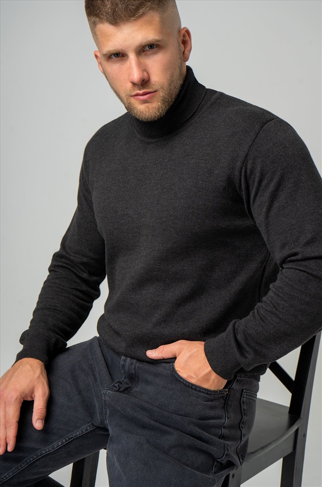 Однотонный мужской джемпер антрацитового цвета идеален для создания повседневных образов.
