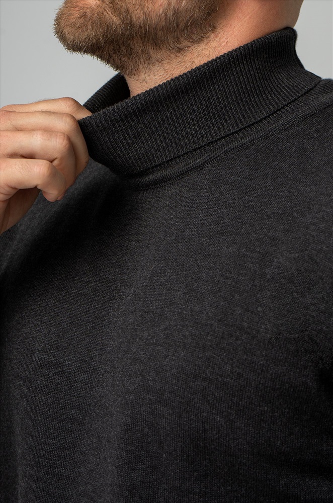 Серая водолазка с высоким воротом для мужчин выполнена из вязаного трикотажа: в ней будет уютно и тепло в прохладную погоду. Хлопковый бадлон из мягкой пряжи с акрилом не колется, он невероятно мягкий и приятный к телу.