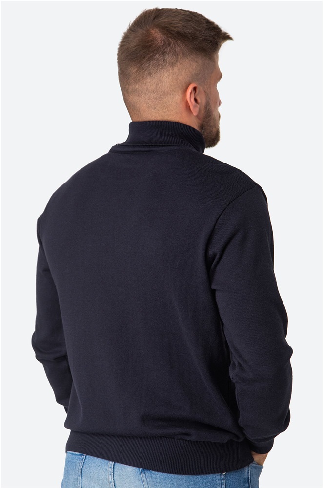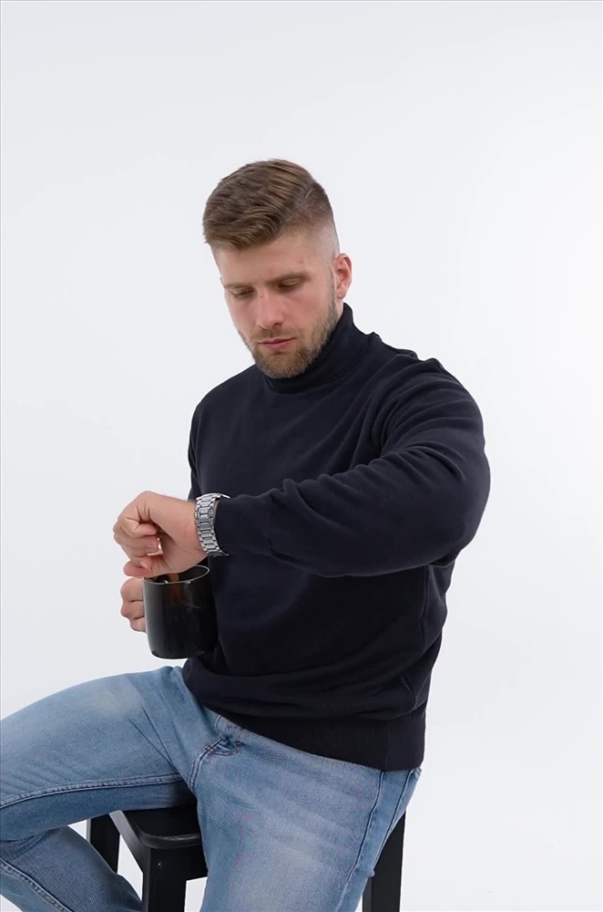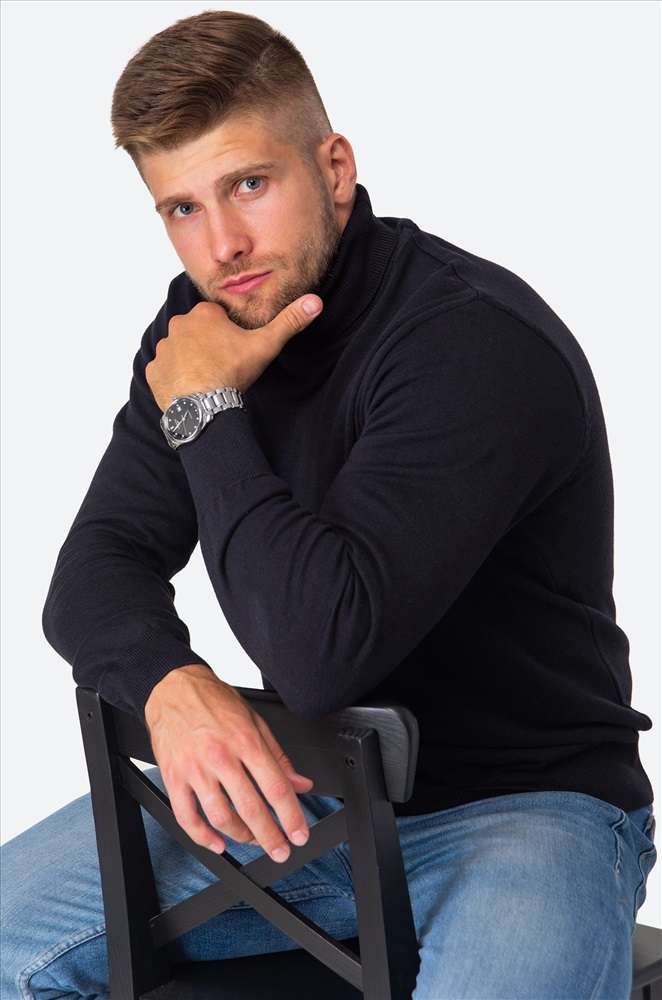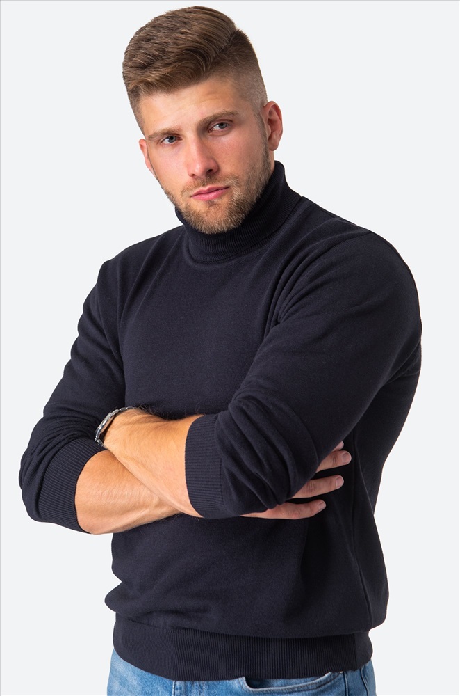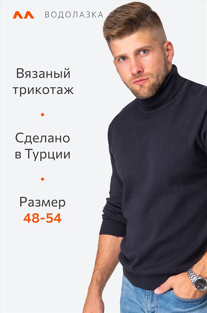 Однотонный мужской джемпер идеален для создания повседневных образов. Синяя водолазка с высоким воротом для мужчин выполнена из вязаного трикотажа: в ней будет уютно и тепло в прохладную погоду. Хлопковый джемпер из мягкой пряжи с акрилом не колется, он невероятно мягкий и приятный к телу. Модель из хлопка и акрила прекрасно сохраняет тепло, она очень прочная, не растягивается и не мнется. В ней комфортно зимой и осенью. Прилегающий фасон не сковывает движения, эластичные манжеты на длинных рукавах и по низу водолазки плотно фиксируют ее на теле. Воротник не пережимает горло и держит форму. Базовый джемпер с горлом прекрасно подходит для деловых и повседневных образов, хорошо впишется в образы для работы в офисе. Модель Артем, его рост 172 см, параметры 113-82-100 см. На нем джемпер размера 50.