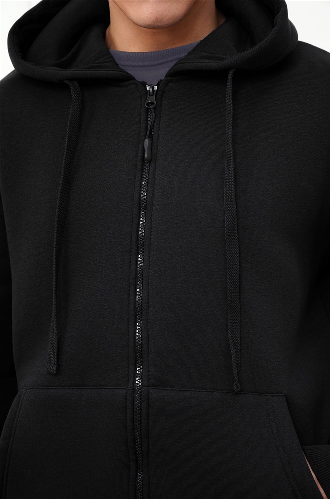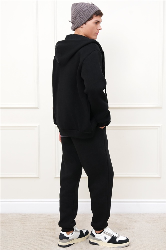 Теплый мужской костюм черного цвета от бренда Happyfox выполнен из трикотажа футер с начесом. В комплект входят толстовка с капюшоном и брюки-джоггеры, созданные для максимального комфорта и свободы движений.