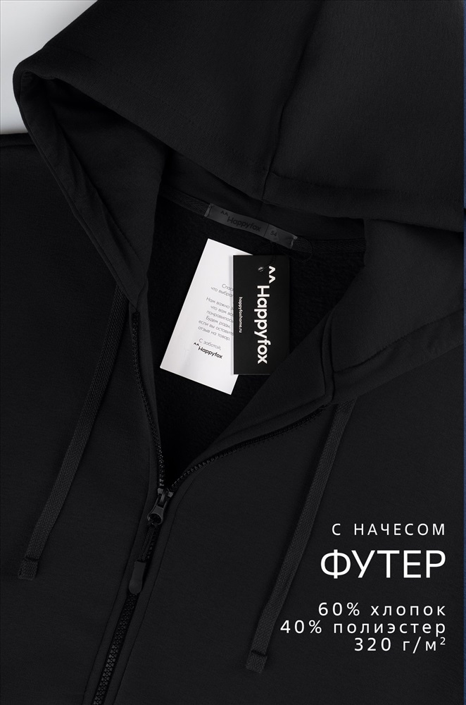 Бренд: Happyfox Страна: Узбекистан Состав: 60% хлопок, 40% полиэстер Материал: Футер с начёсом Плотность ткани: 320 г/м2 Цвет: черный