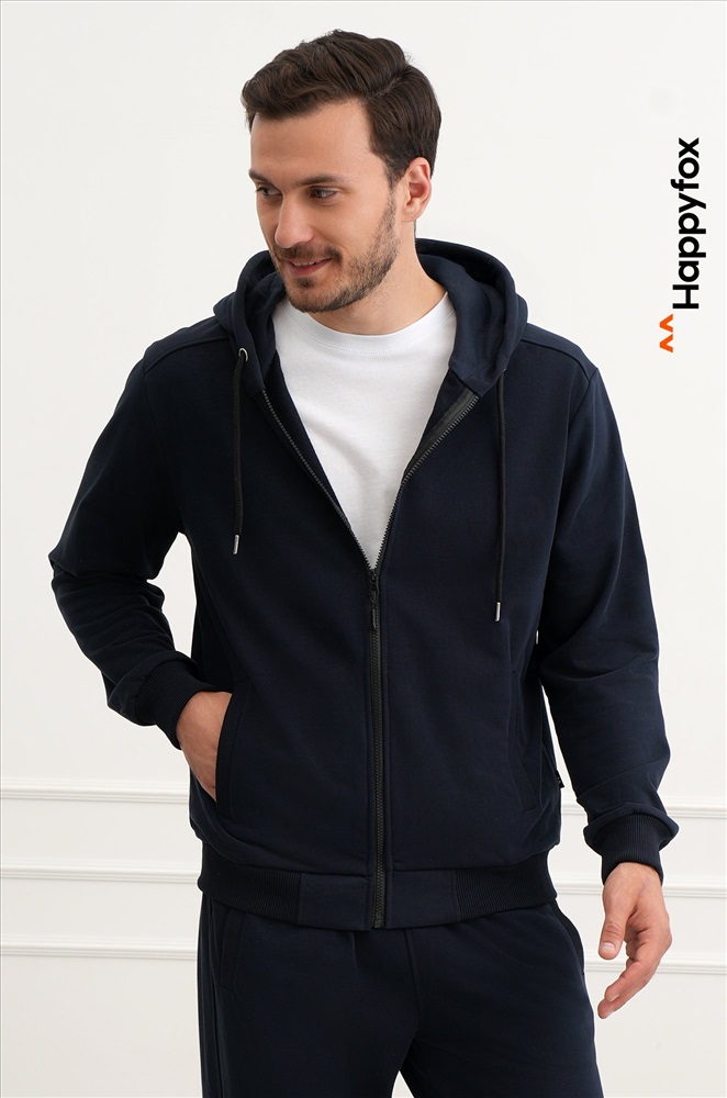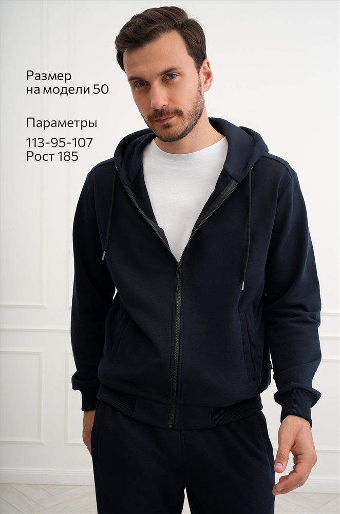 Мужской спортивный костюм из футера трехнитки создан для комфорта и свободы движений. Однотонный темно-синий костюм смотрится стильно и современно, а натуральный хлопковый трикотаж делает его удобным и практичным.