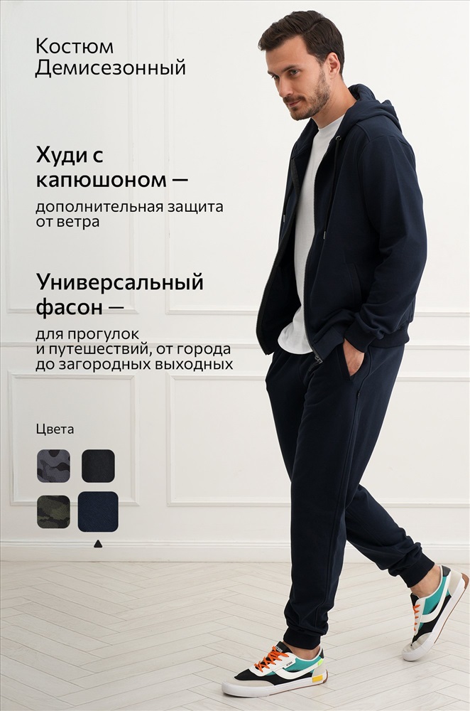 Продуманный крой, эластичные манжеты и регулируемый капюшон делают трикотажный костюм практичным выбором в любое время года. Демисезонный костюм идеально вписывается в уличный стиль.